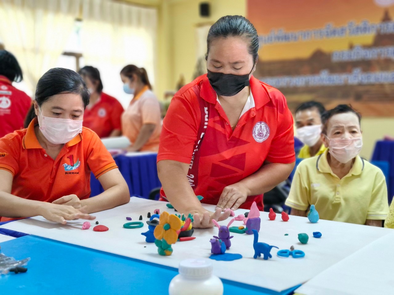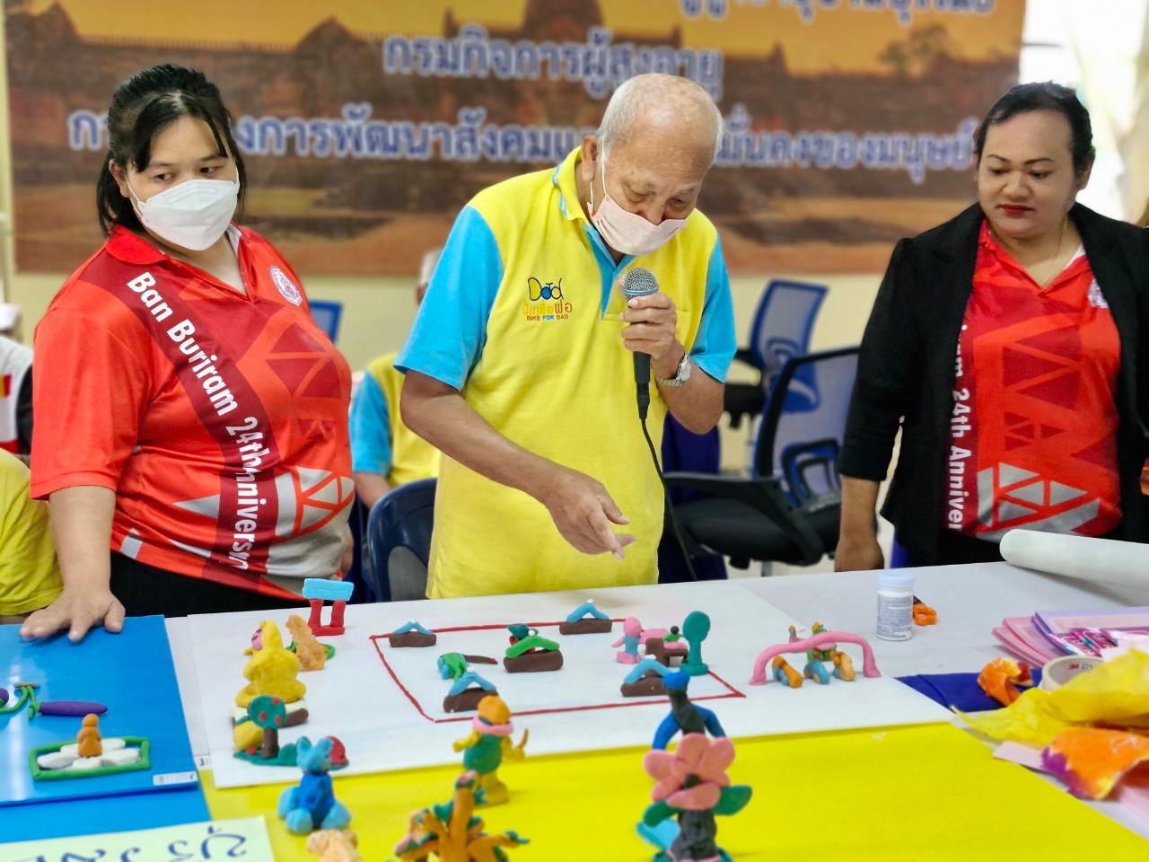 ศพส.บ้านบุรีรัมย์ ข้าราชการ เจ้าหน้าที่และผู้รับบริการ เข้าร่วมโครงการศิลปะบำบัดชะลอสมองเสื่อม เพื่อให้ข้าราชการเจ้าหน้าที่และผู้รับบริการ มีความเข้าใจและทักษะพื้นฐานในการเลือกใช้กิจกรรมและอุปกรณ์ทำชิ้นศิลปะฝึกฝนชะลอความเสื่อมของสมองและสามารถนำไปสร้างศูนย์เรียนรู้ ศิลปะบำบัด : ชะลอสมองเสื่อม โดยมีกลุ่มเป้าหมายจำนวน 40 คน ณ ห้องประชุม happy home ศพส.บ้านบุรีรัมย์