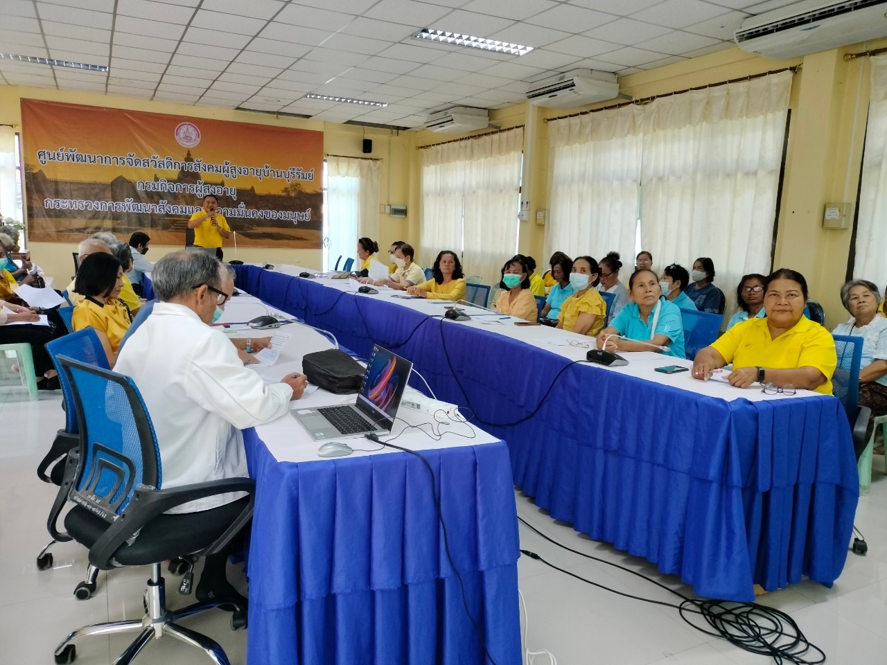 ศพส.บ้านบุรีรัมย์ ร่วมกับเทศบาลเมืองชุมเห็ด ดำเนินการขับเคลื่อนโรงเรียนผู้สูงอายุเทศบาลเมืองชุมเห็ด เพื่อส่งเสริมการเรียนรู้ตลอดชีวิตของผู้สูงอายุในพื้นที่ เป็นสื่อกลางแลกเปลี่ยนเรียนรู้ข้อมูลข่าวสารการดูแล และคุ้มครองพิทักษ์สิทธิผู้สูงอายุ ส่งเสริมการพัฒนาคุณภาพชีวิตผู้สูงอายุ 5 มิติ ณ ห้องประชุม Happy home ศพส.บ้านบุรีรัมย์