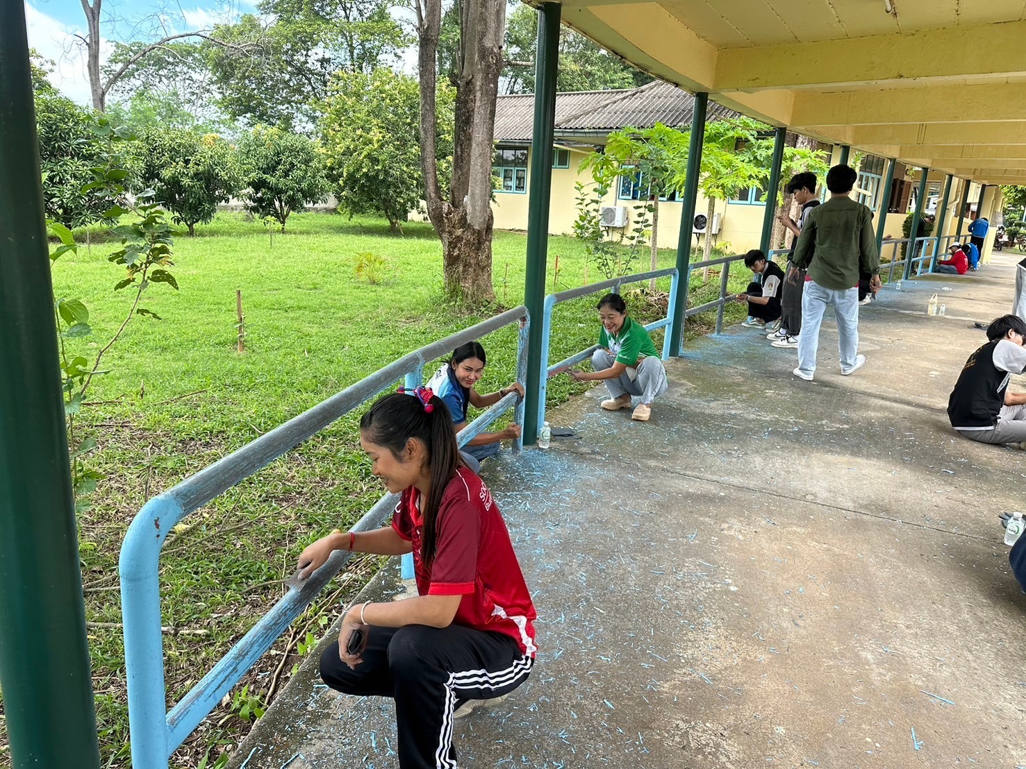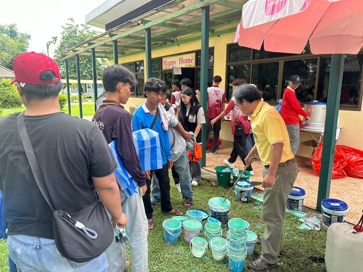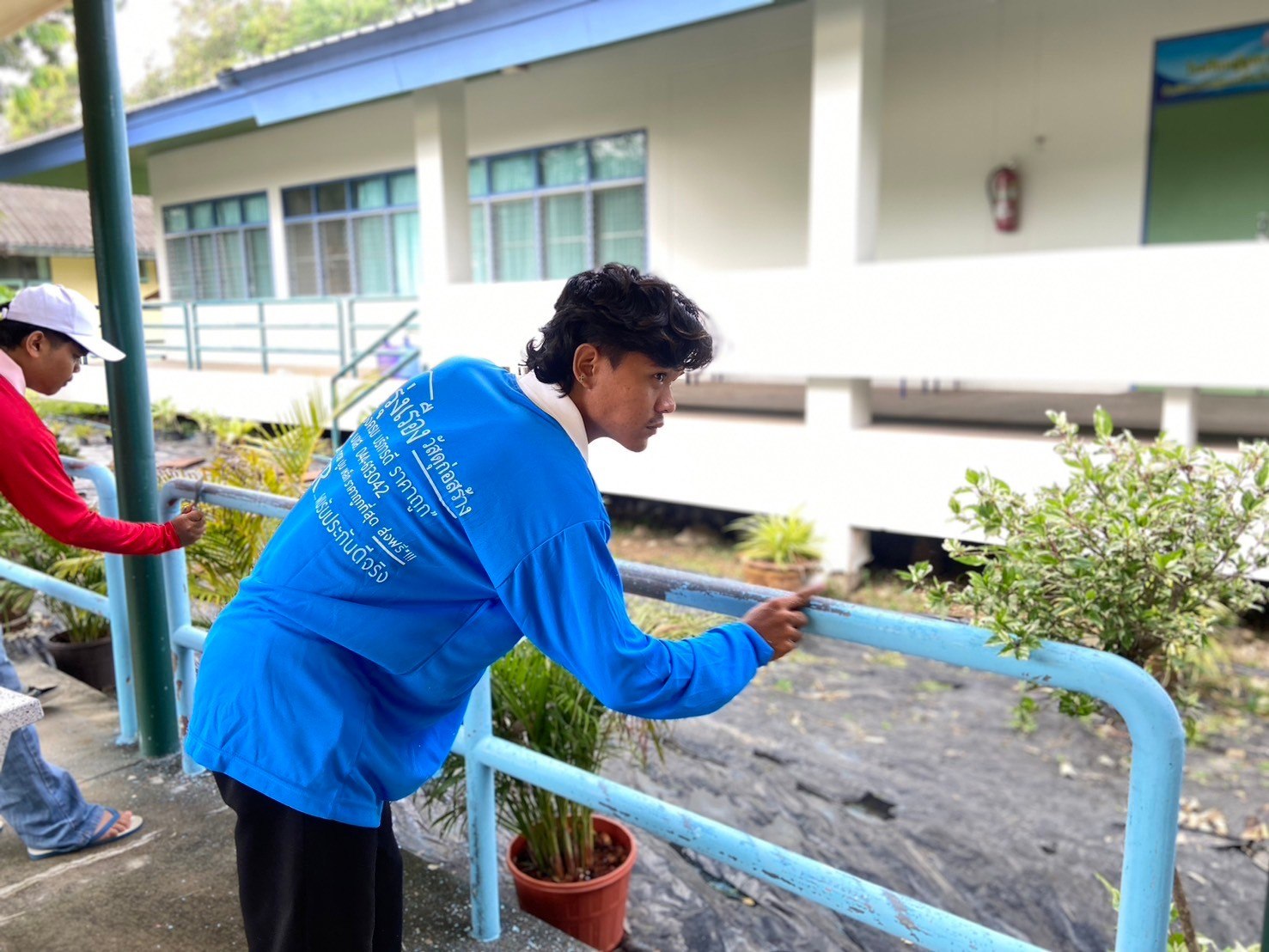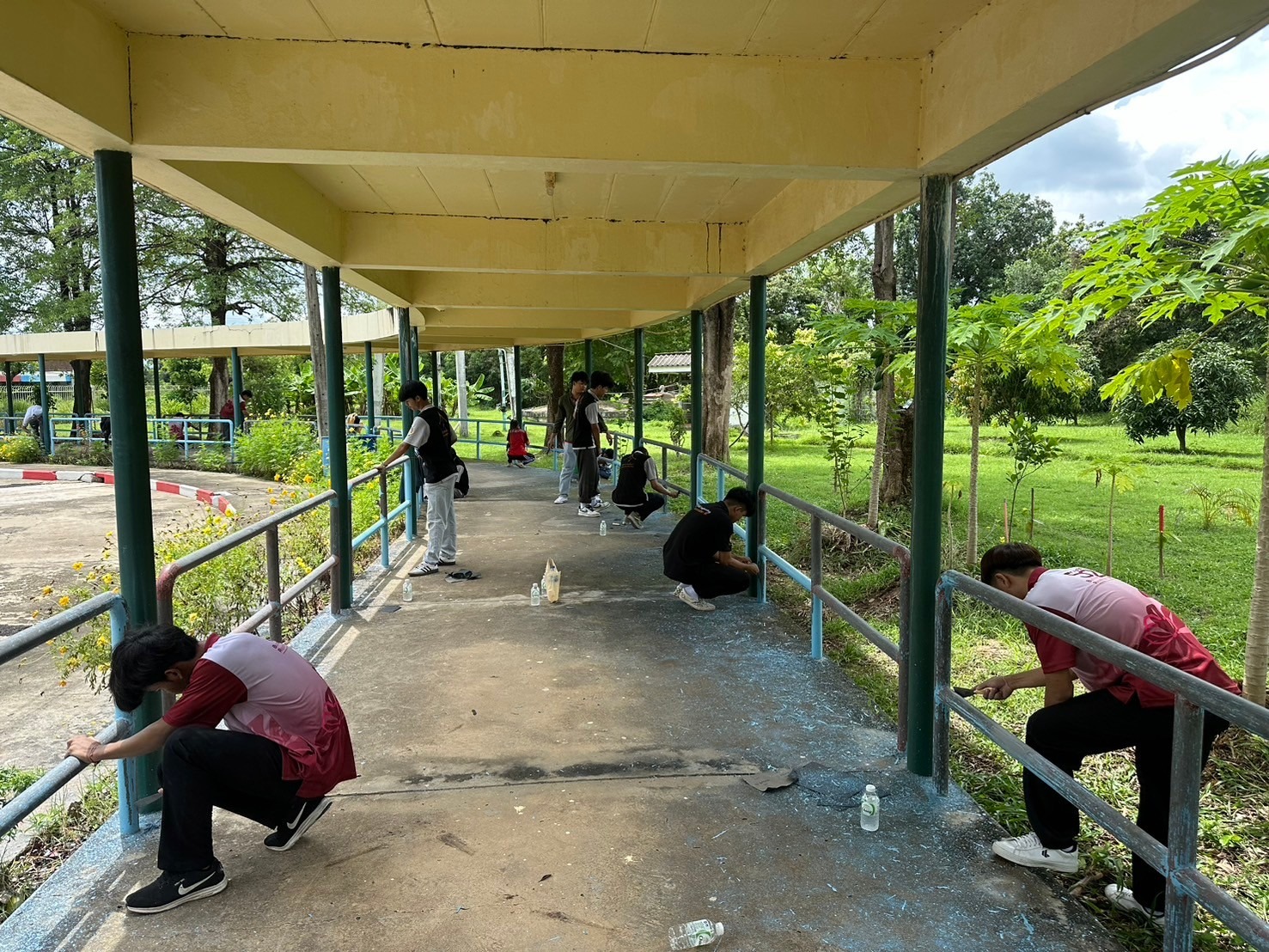 โครงการ Give and Care พลังจิตอาสาสร้างรอยยิ้ม ศพส.บ้านบุรีรัมย์ ร่วมกับ มูลนิธิเมืองไทยยิ้ม บริษัทเมืองไทยประกันชีวิต จำกัด (มหาชน) และทีมจิตอาสานักศึกษามหาวิทยาลัยราชภัฏบุรีรัมย์ ร่วมกันขัดสี ทาสีราวจับ ทางเดิน เพื่อความปลอดภัยของผู้สูงอายุ