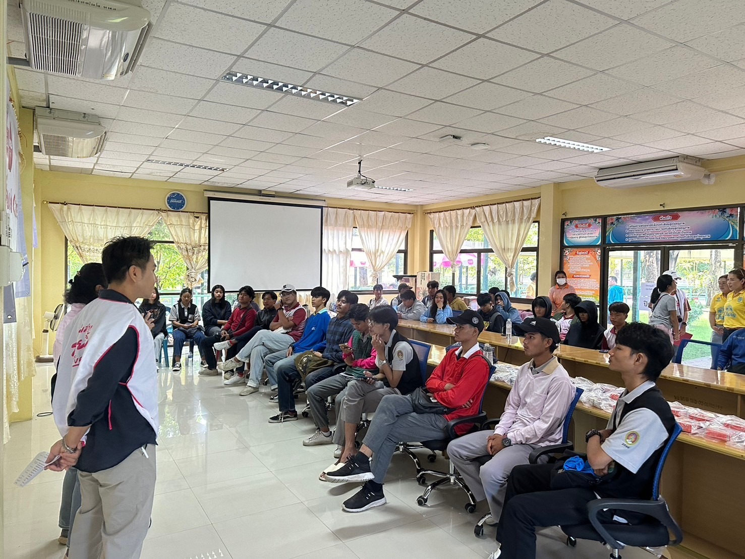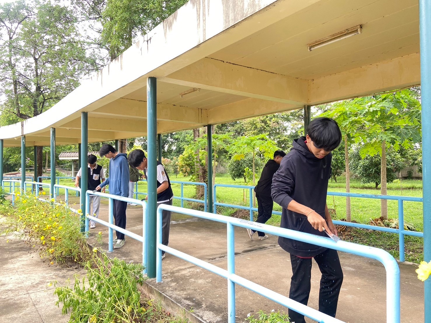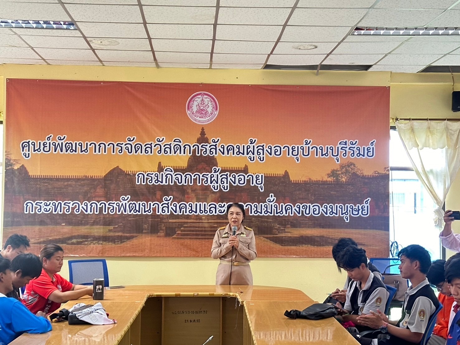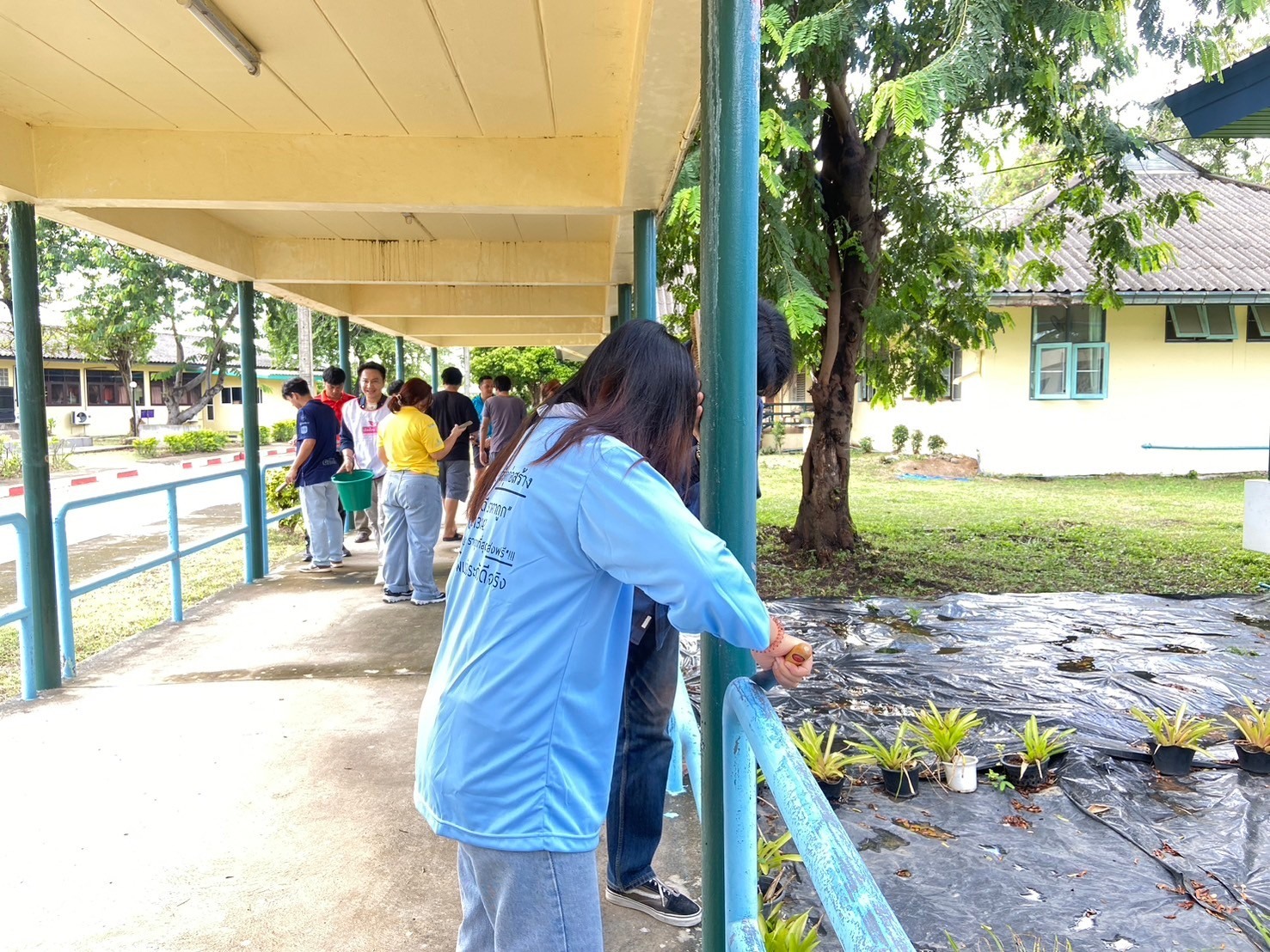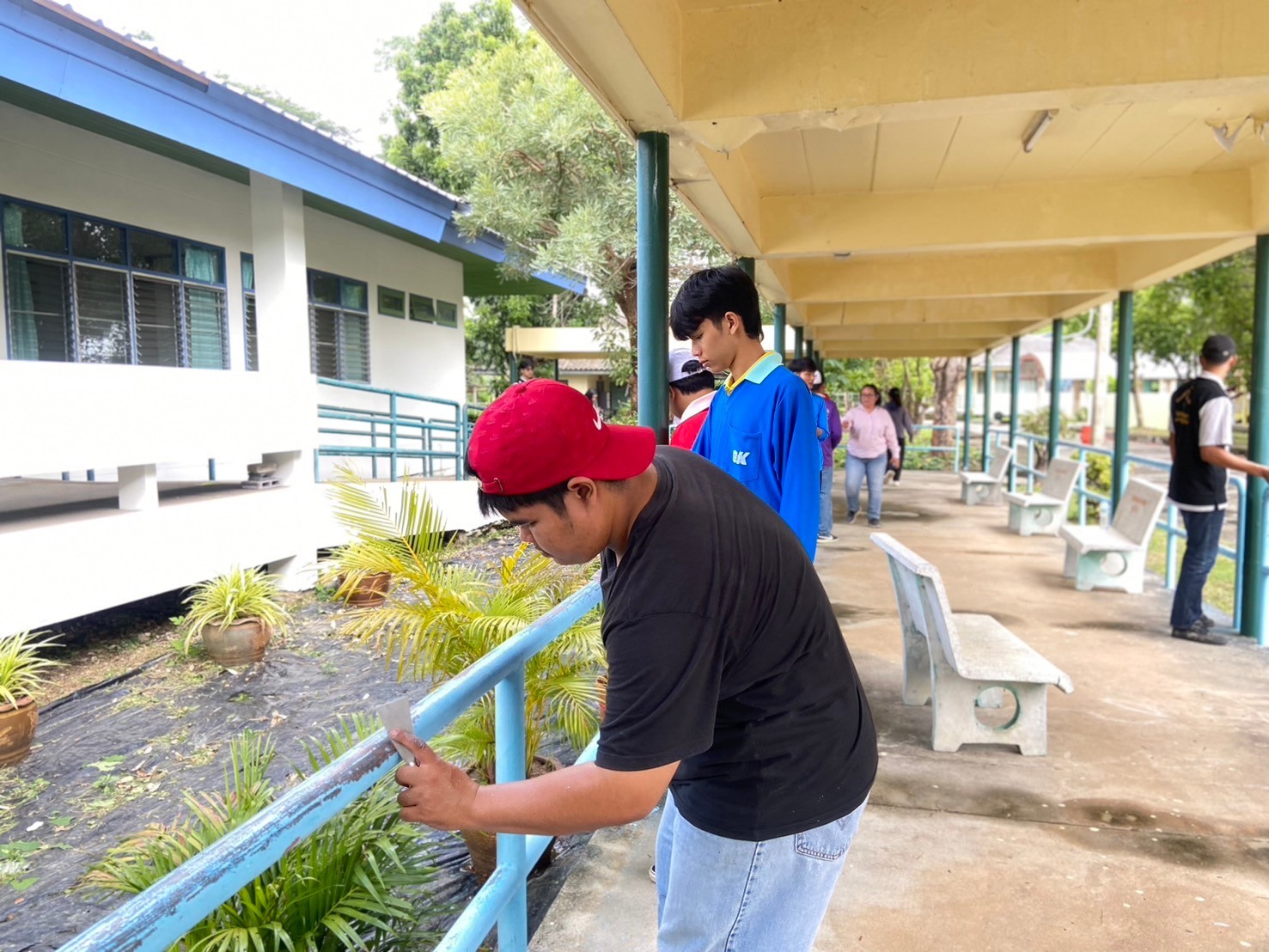 โครงการ Give and Care พลังจิตอาสาสร้างรอยยิ้ม ศพส.บ้านบุรีรัมย์ ร่วมกับ มูลนิธิเมืองไทยยิ้ม บริษัทเมืองไทยประกันชีวิต จำกัด (มหาชน) และทีมจิตอาสานักศึกษามหาวิทยาลัยราชภัฏบุรีรัมย์ ร่วมกันขัดสี ทาสีราวจับ ทางเดิน เพื่อความปลอดภัยของผู้สูงอายุ