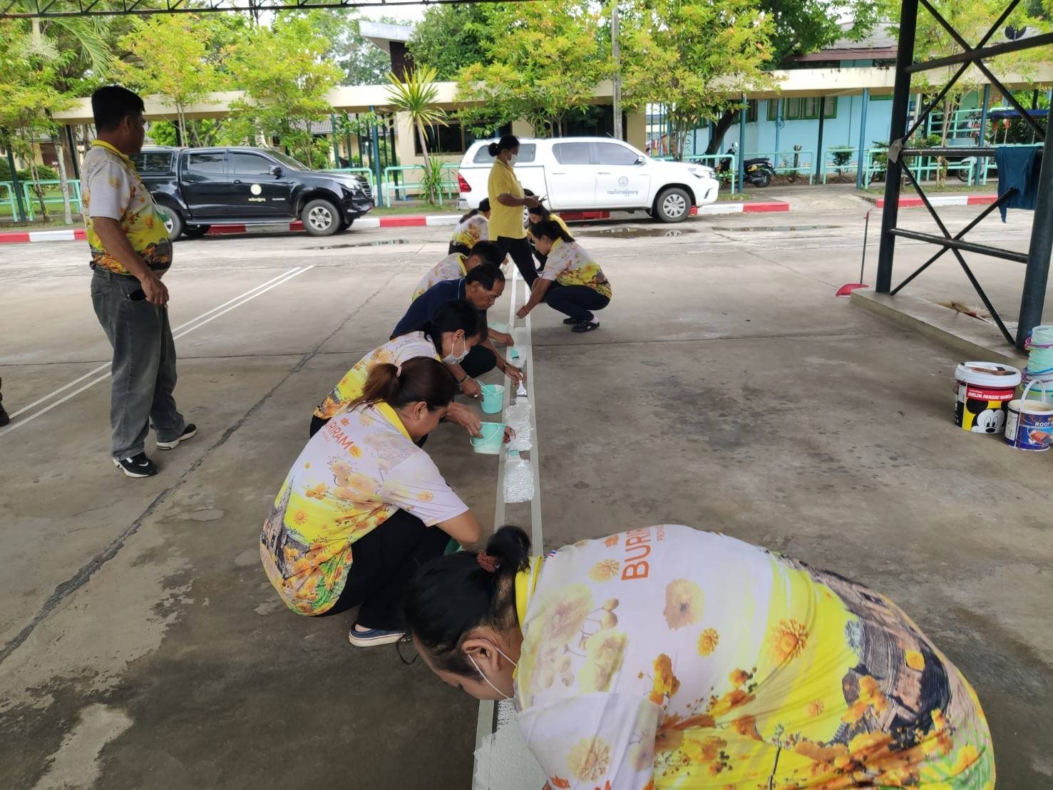 ศพส.บ้านบุรีรัมย์ ร่วมกันปรับภูมิทัศน์ (ตีเส้นช่องจอดรถยนต์) เพื่อจัดระเบียบพื้นที่จอดรถ และความปลอดภัยของการจราจรภายในศูนย์ฯ