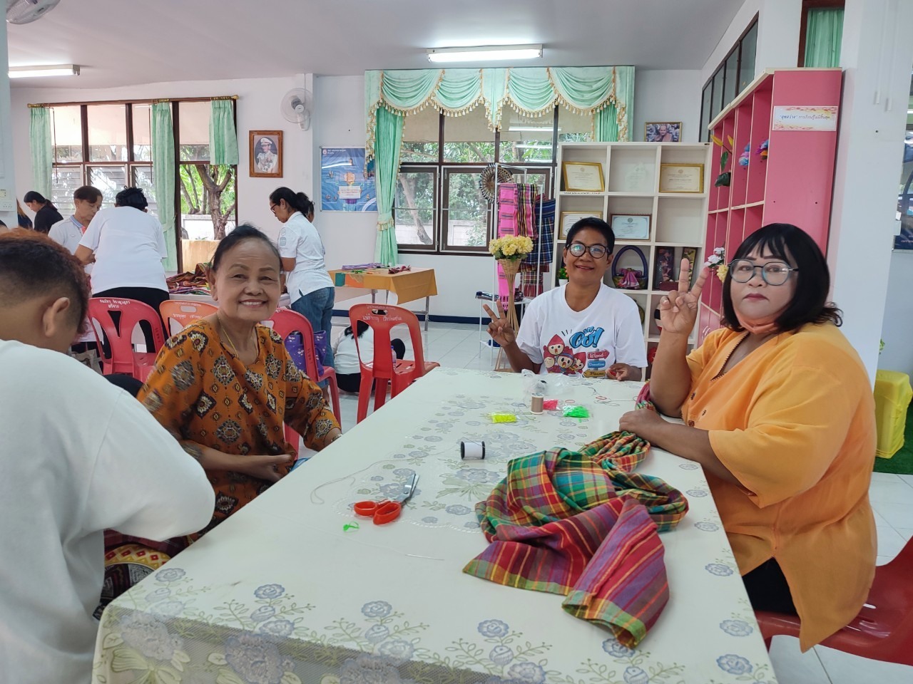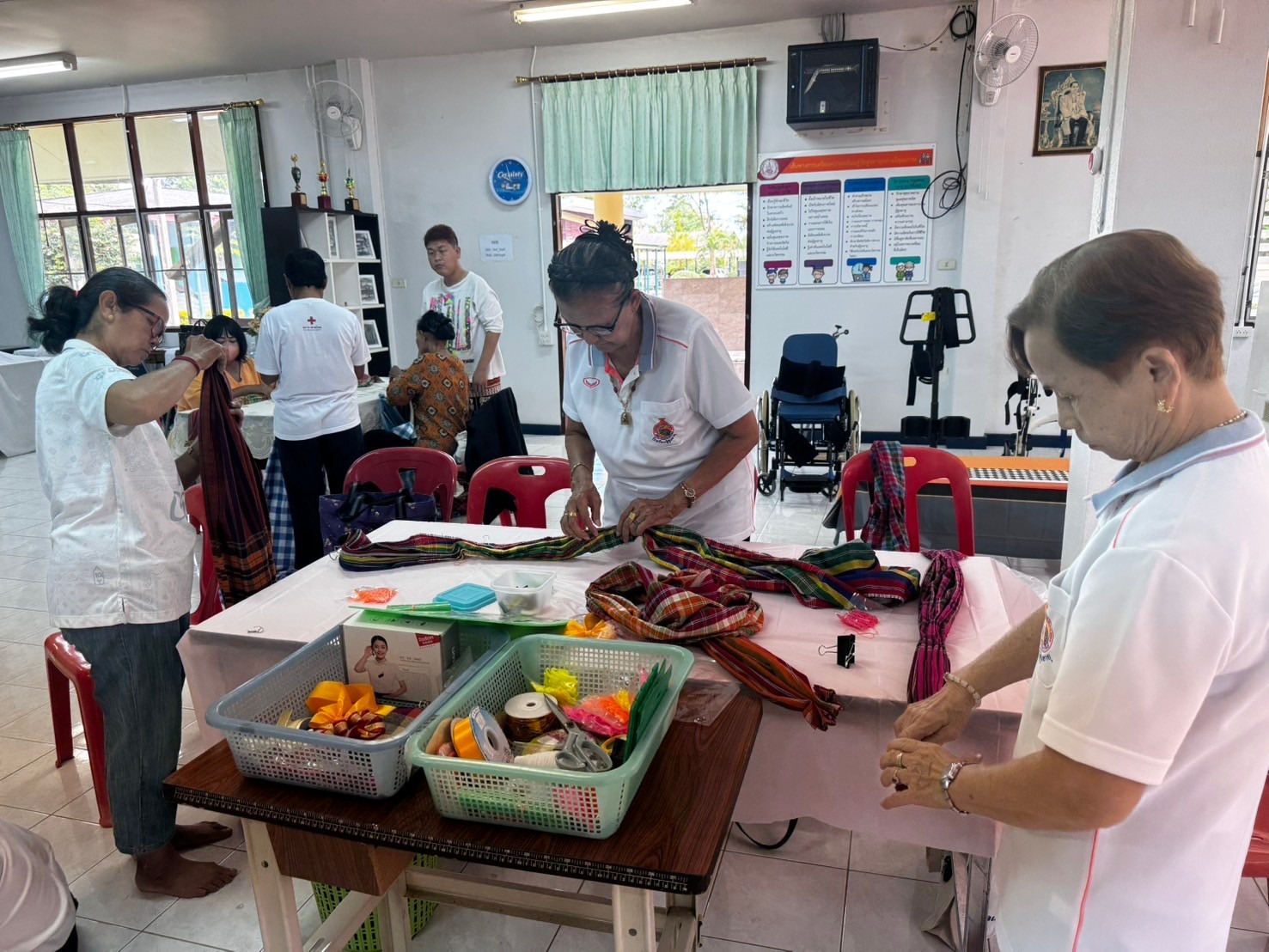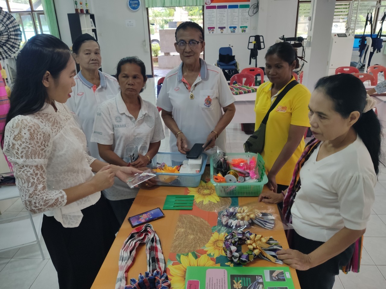 กิจกรรมประดิษฐ์ประดอยส่งเสริมอาชีพและการมีงานทำผู้สูงอายุ ฝึกอบรมการประดิษฐ์ “มาลัยกรผ้าขาวม้าฟอง ๆ ”