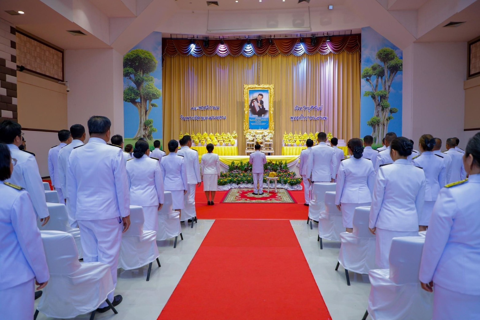 พิธีวางพานพุ่มดอกไม้สด น้อมรำลึกในพระมหากรุณาธิคุณพระบาทสมเด็จ พระบรมชนกาธิเบศร มหาภูมิพลอดุลยเดชมหาราช บรมนาถบพิตร เนื่องในวันพระบิดาแห่งฝนหลวง ประจำปี 2567