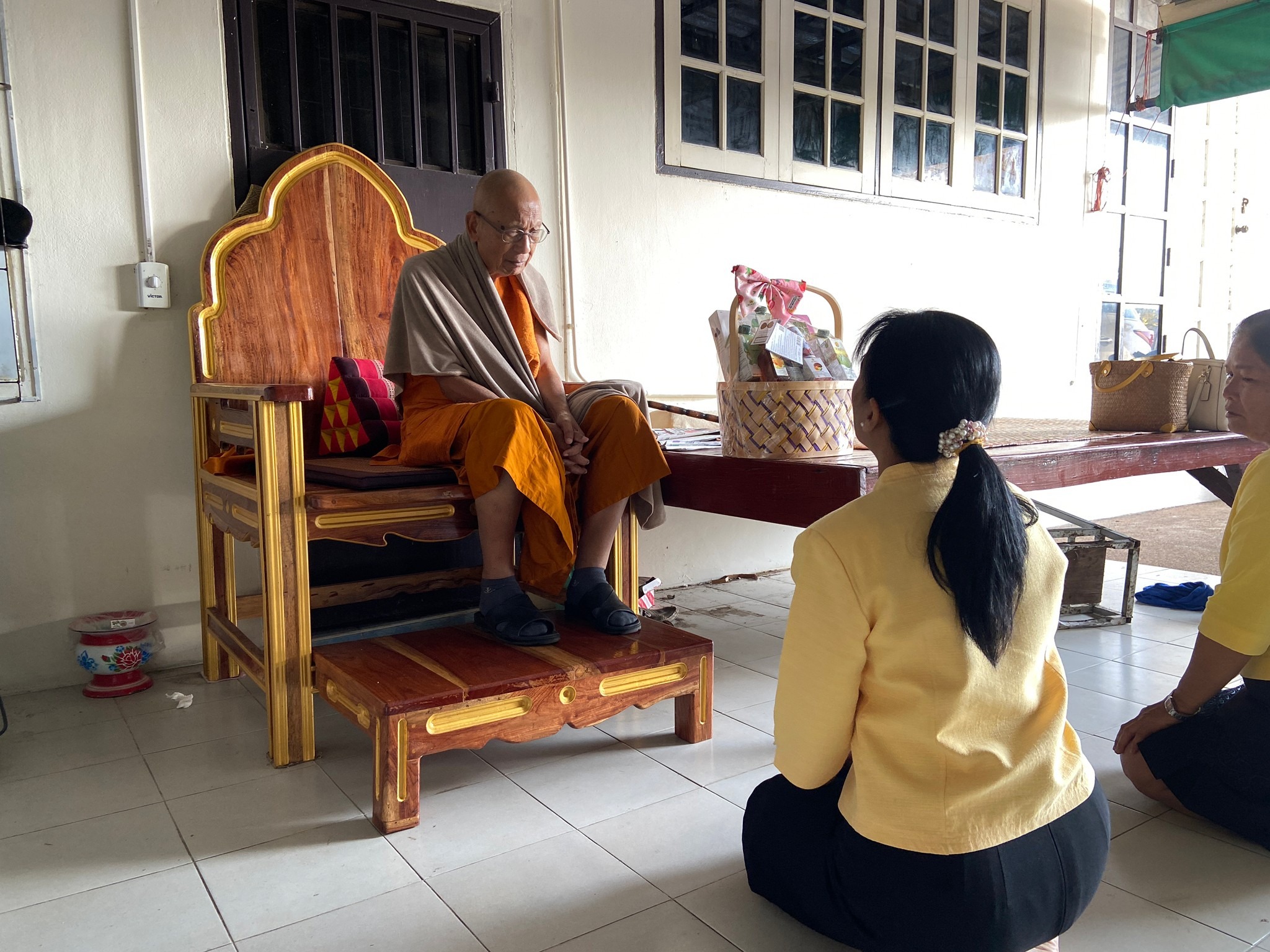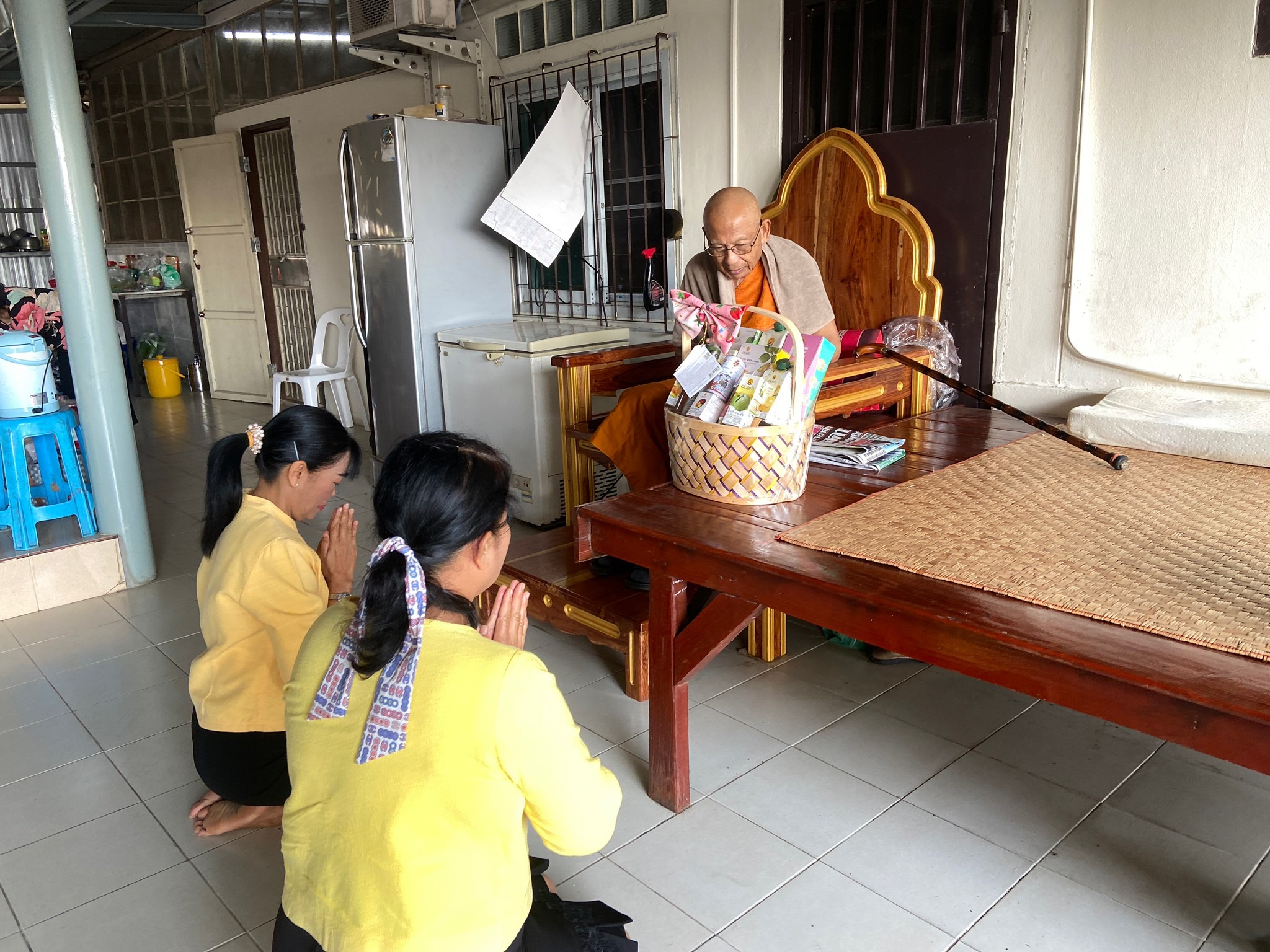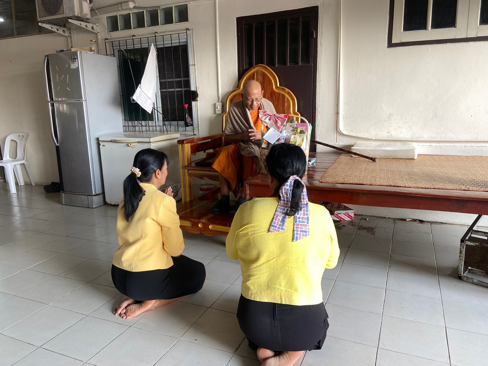นางเจริญศรี วงค์สม ผู้อำนวยการ ศพส.บ้านบุรีรัมย์ พร้อมด้วย นางอัมพร ฤชาอุดม หัวหน้าฝ่ายบริหารทั่วไป เข้ากราบนมัสการ พระธรรมวชิรสุตาภรณ์ (สุพจน์ โชติญาโณ) เจ้าคณะจังหวัดบุรีรัมย์ ณ วัดกลาง พระอารามหลวง