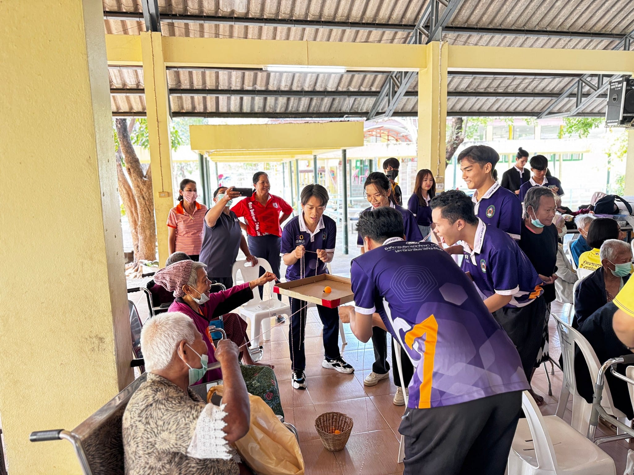 ศพส.บ้านบุรีรัมย์ ให้การต้อนรับ คณะนักศึกษามหาวิทยาลัยราชภัฏบุรีรัมย์ จำนวน 50 คน เข้าศึกษาดูงานการดูแลผู้สูงอายุ และทำกิจกรรมกับผู้สูงอายุ โดยมีกิจกรรมฟื้นฟูกายบริหาร กิจกรรมนันทนาการ เพื่อส่งเสริมคุณภาพชีวิตของผู้สูงอายุ ลดความวิตกกังวล และเกิดความสนุกสนาน