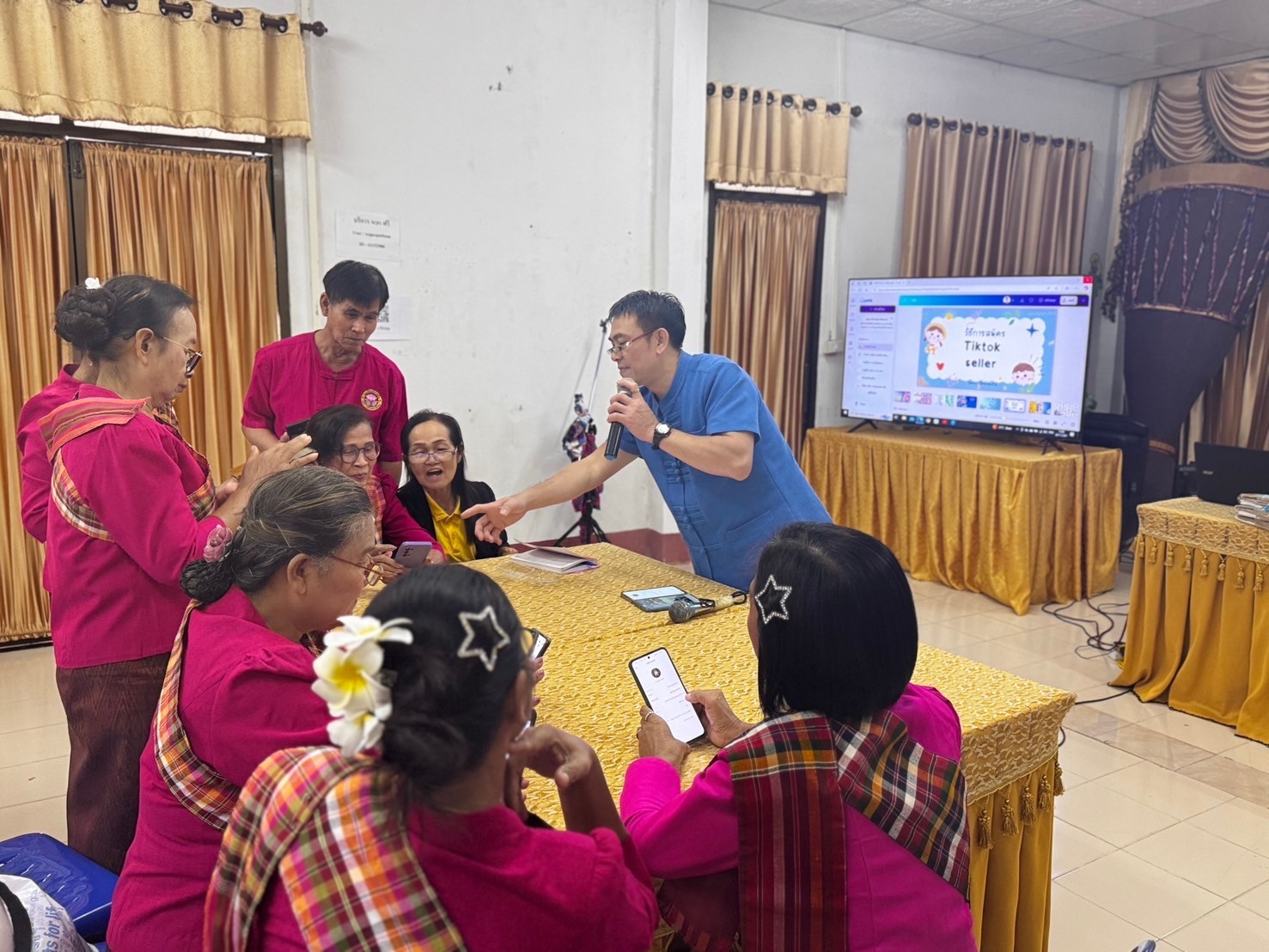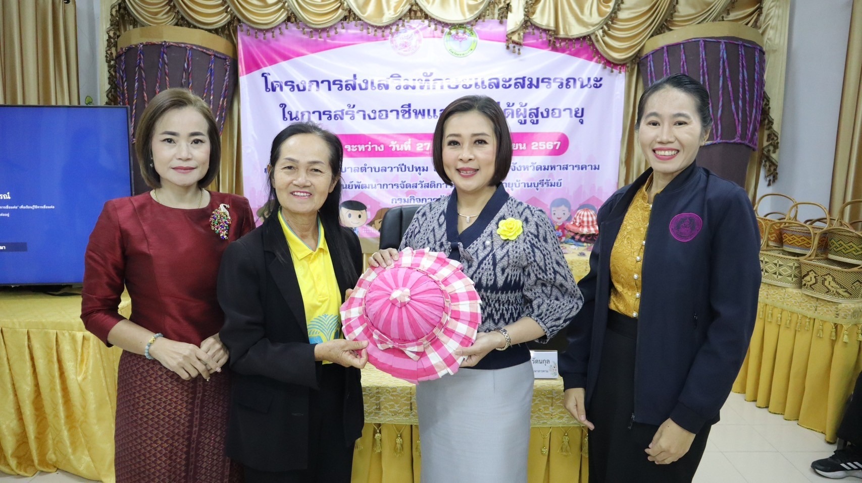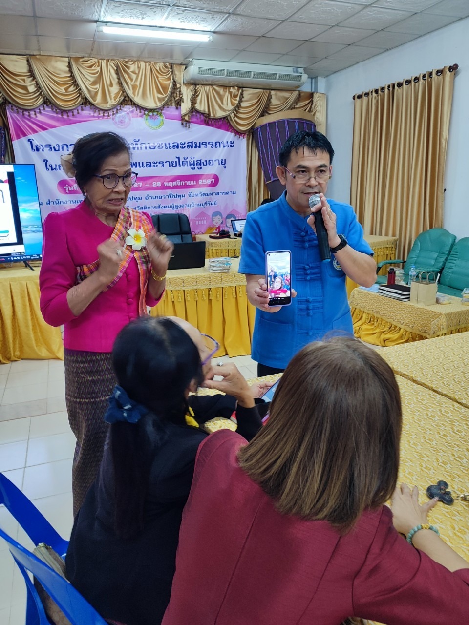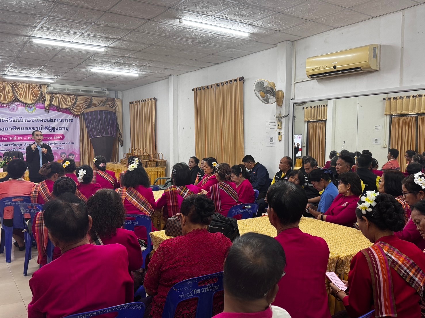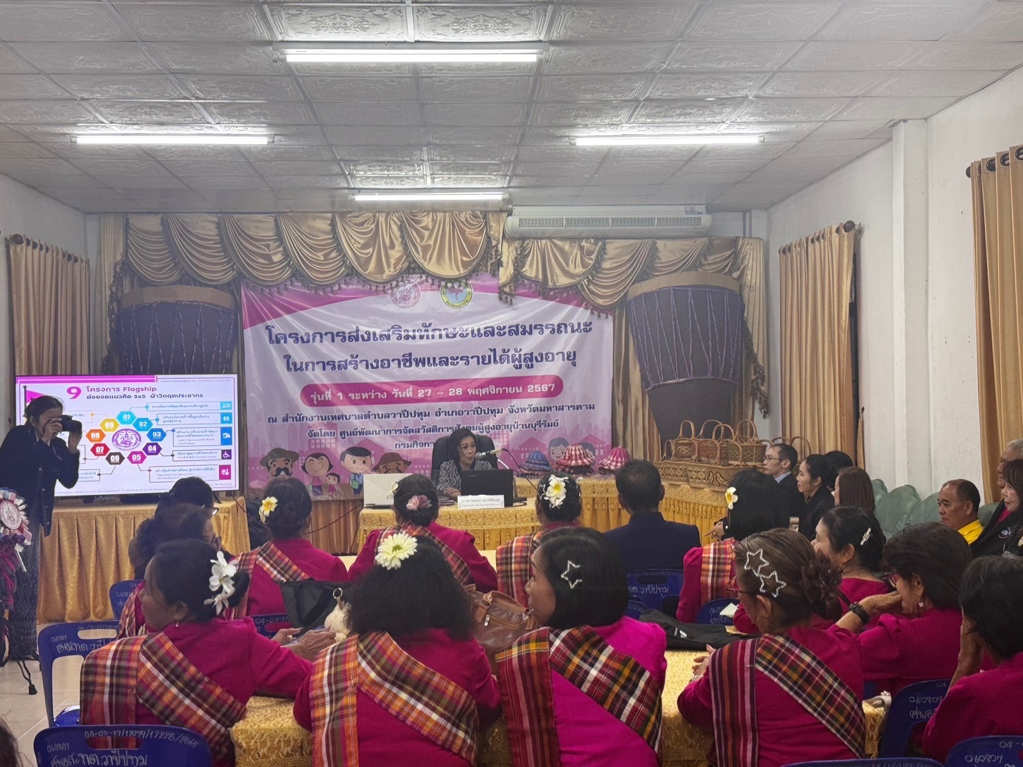 ศพส.บ้านบุรีรัมย์ โดยกลุ่มนโยบายและวิชาการ จัดโครงการส่งเสริมทักษะและสมรรถนะในการสร้างอาชีพและรายได้ผู้สูงอายุ รุ่นที่ 1 (วันที่ 2) ณ สำนักงานเทศบาลตำบลวาปีปทุม อำเภอวาปีปทุม จังหวัดมหาสารคาม เพื่อเสริมสร้างความเข้มแข็งและพัฒนาศักยภาพด้านอาชีพให้แก่เครือข่าย ผู้สูงอายุ เพิ่มรายได้ ลดภาวะการพึ่งพิง เสริมสร้างความรู้และโอกาสการประกอบอาชีพในรูปแบบการตลาดออนไลน์ (Digital Marketing) สามารถใช้เครื่องมือบนแพลตฟอร์มเพื่อประชาสัมพันธ์ และพัฒนาผลิตภัณฑ์ให้เป็นที่ต้องการของตลาด ส่งเสริมการมีงานทำ และเพิ่มรายได้ยกระดับคุณภาพชีวิตผู้สูงอายุ มีกลุ่มเป้าหมาย จำนวน 35 คน โดยมี นางสาวชลลดา ชนะศรีรัตนกุล พัฒนาสังคมและความมั่นคงของมนุษย์จังหวัดมหาสารคาม เป็นประธาน