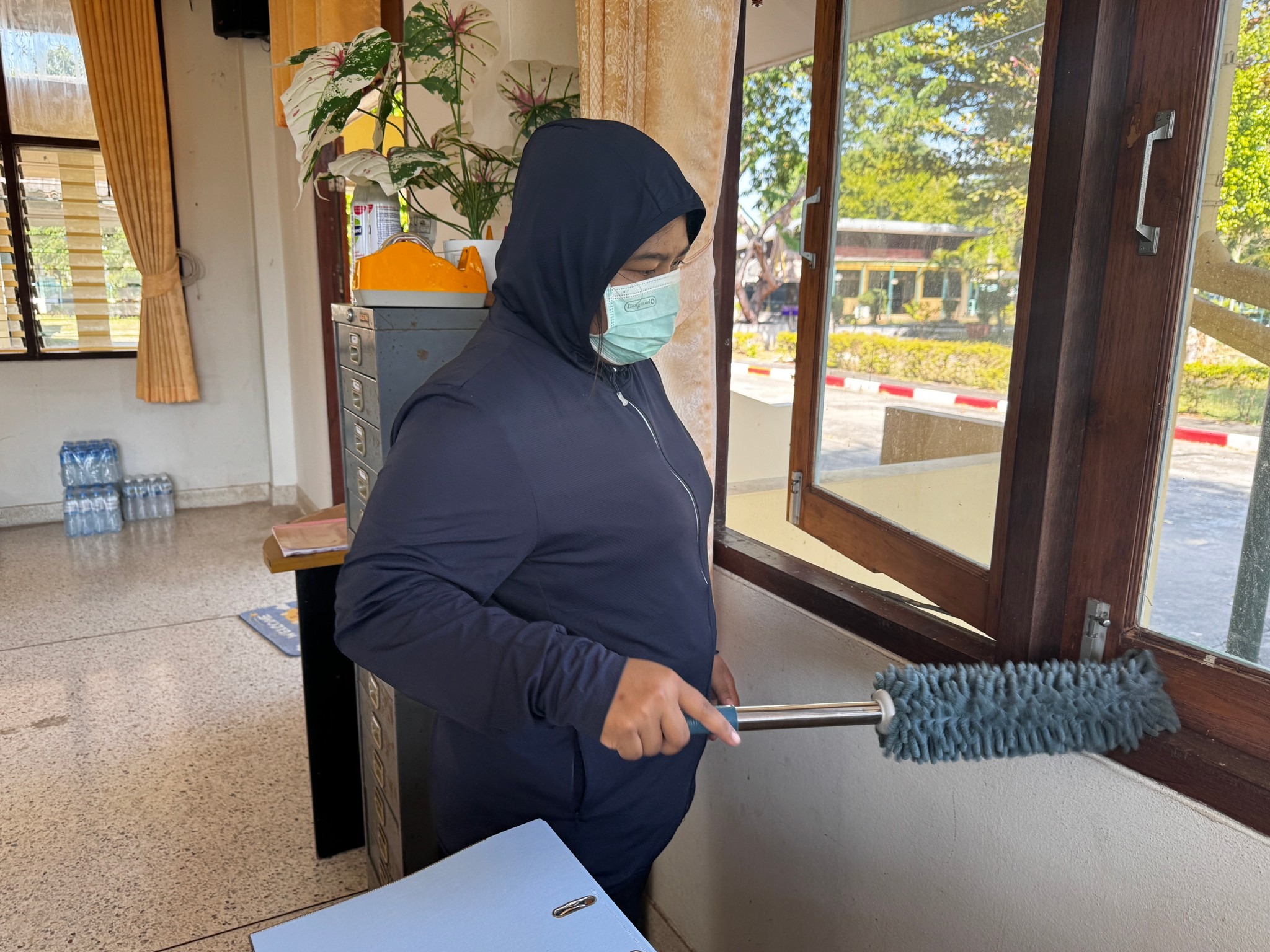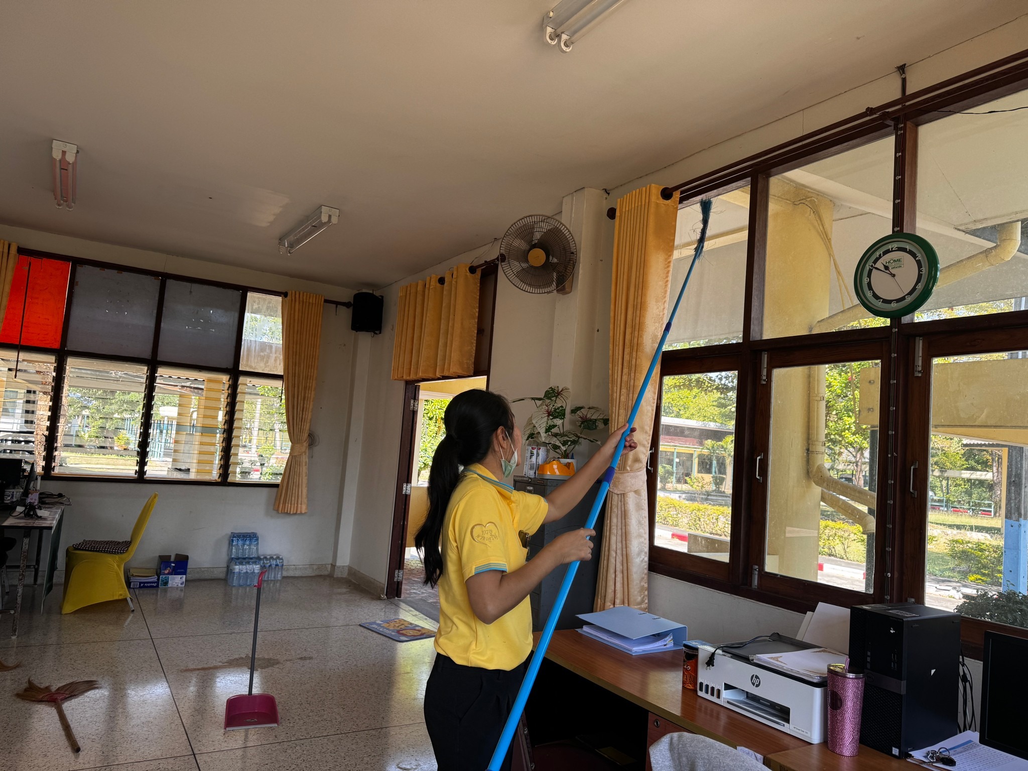 จัดกิจกรรม 5 ส. ร่วมใจ พัฒนาสภาพแวดล้อม ทำความสะอาด กวาดใบไม้บนทางเชื่อมอาคาร เพื่อส่งเสริมคุณค่าของเจ้าหน้าที่ในการมีจิตอาสา และเพื่อความสะอาด เป็นระเบียบ