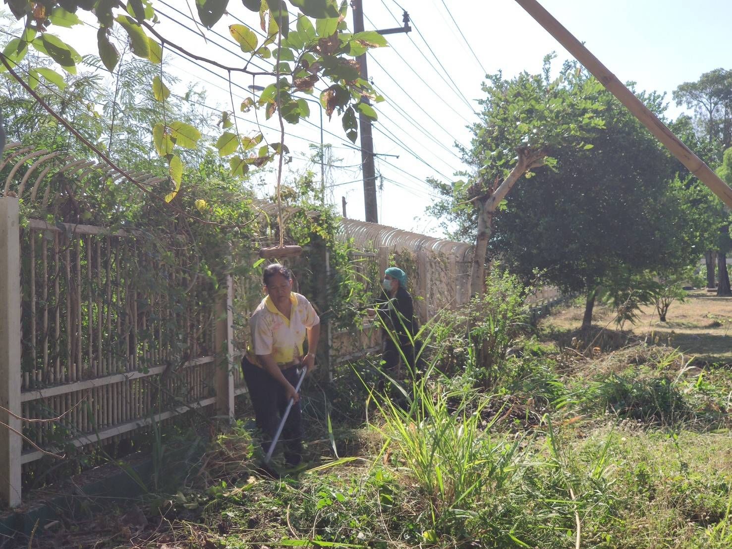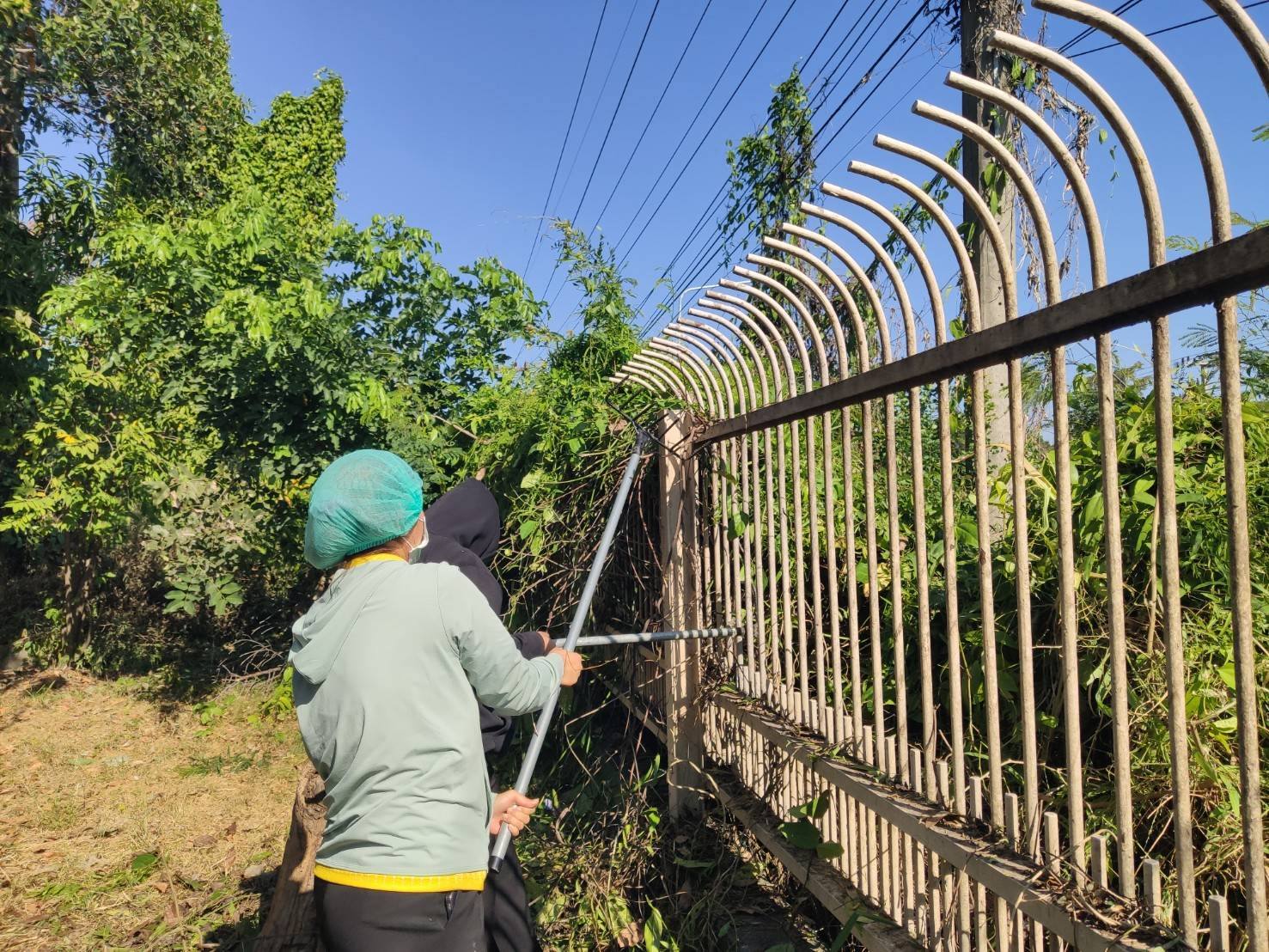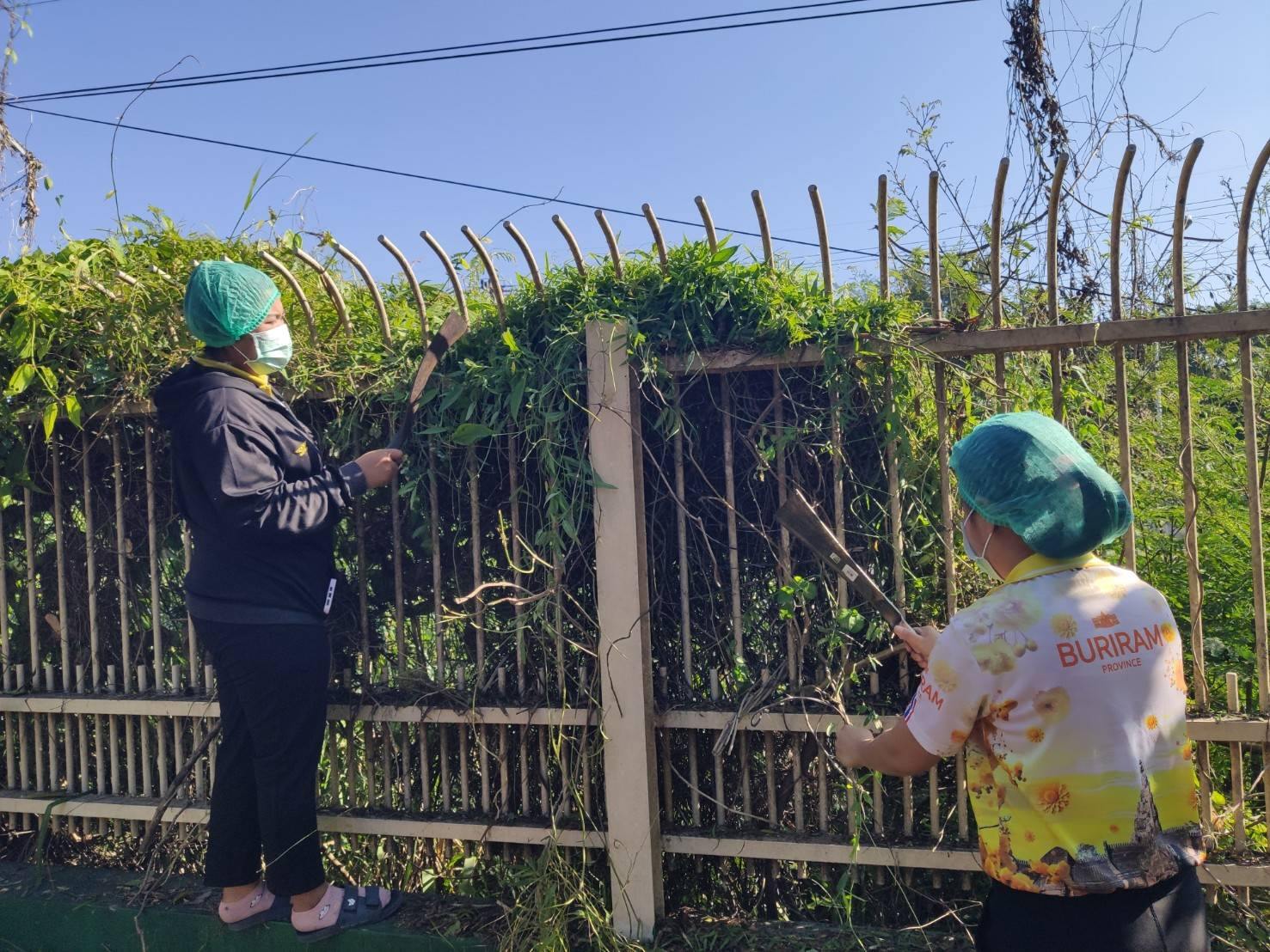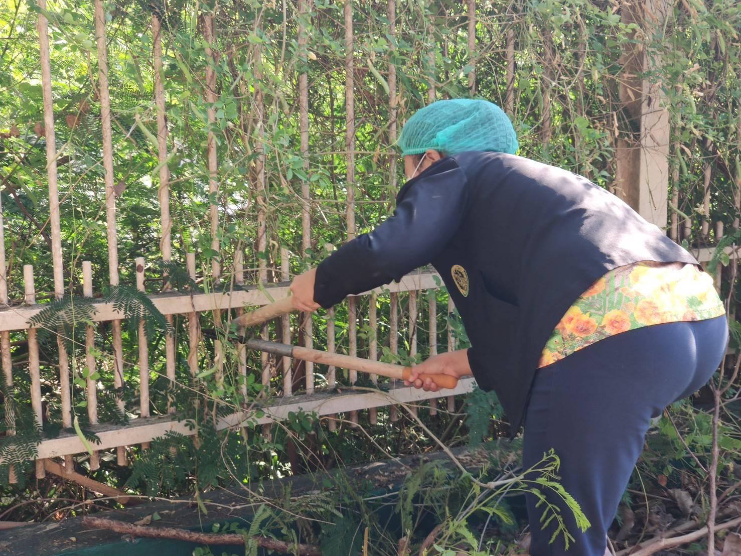 5 ส. ร่วมใจ พัฒนาสภาพแวดล้อม ตัดกิ่งไม้บริเวณรั้วด้านหน้าศูนย์ฯ ทำความสะอาดบริเวณเรือนนอน