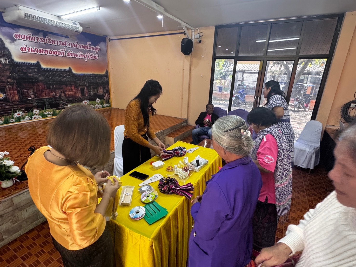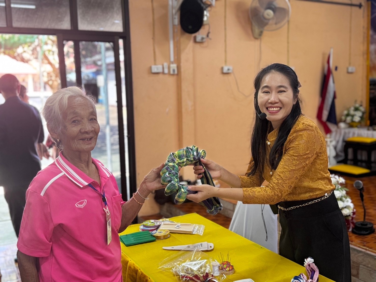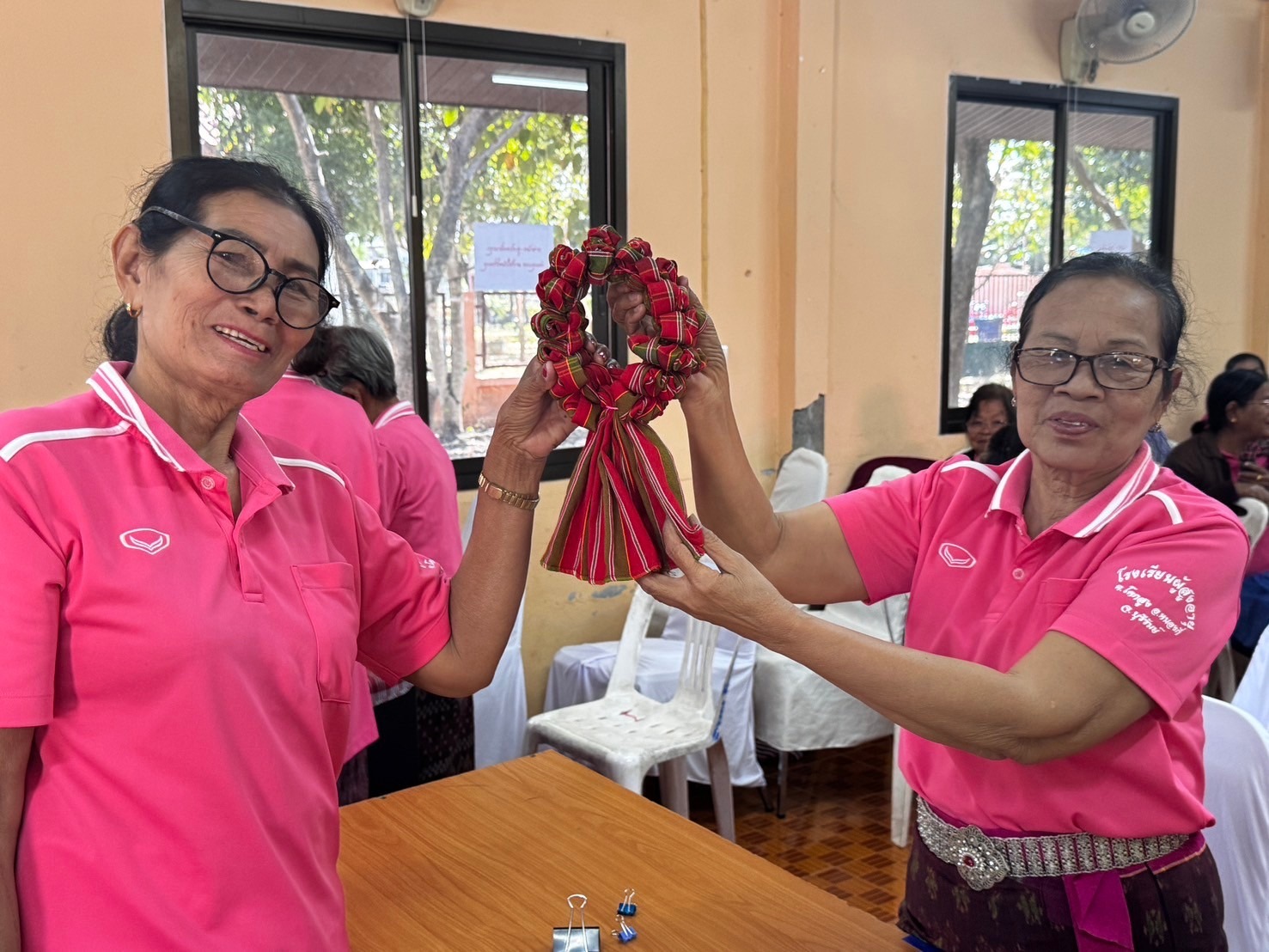กลุ่มนโยบายและวิชาการ นำนักเรียนโรงเรียนผู้สูงอายุเทศบาลเมืองชุมเห็ด ร่วม เป็นวิทยากร และแลกเปลี่ยนเรียนรู้การทำมาลัยผ้าขาวม้าแบบฟองๆ แก่โรงเรียนผู้สูงอายุองค์การบริหารส่วนตำบลโคกสูง อำเภอหนองกี่ จังห