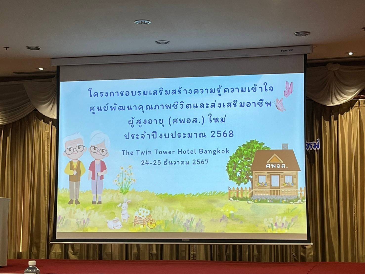 นางสาวกิ่ง ชาเรืองฤทธิ์ นักพัฒนาสังคมชำนาญการ หัวหน้ากลุ่มนโยบายและวิชาการเข้าร่วมโครงการอบรมเสริมสร้างความรู้ความเข้าใจ ศูนย์พัฒนาคุณภาพชีวิตและส่งเสริมอาชีพผู้สูงอายุ (ศพอส.) ใหม่ ประจำปีงบประมาณ 2568 ณ ห้องมิ่งเมือง ชั้น 4 The Twin Tower Hotel Bankok กรุงเทพมหานคร โดยมีนางสาวอัญชลี จิตรเสนาะ ผู้อำนวยการกองส่งเสริมศักยภาพผู้สูงอายุ เป็นประธาน