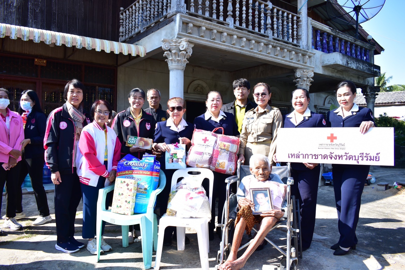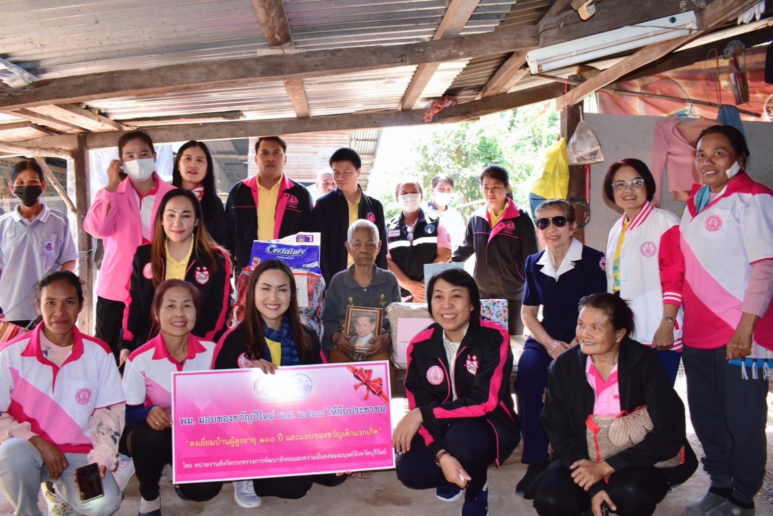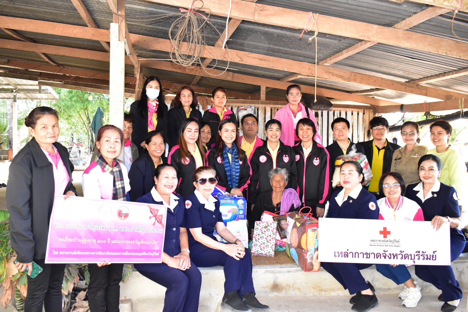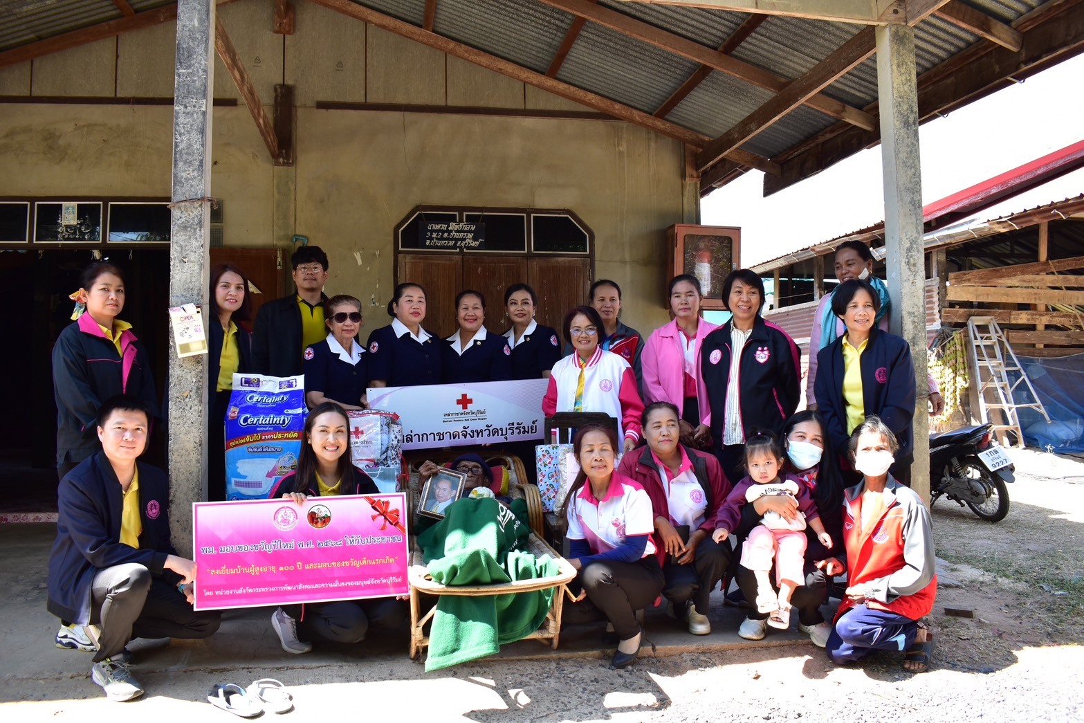 ศพส.บ้านบุรีรัมย์ ร่วมกิจกรรม พม. มอบของขวัญปีใหม่ พ.ศ. 2568 โดย “ลงพื้นที่เยี่ยมบ้านผู้สุงอายุ 100 ปี จำนวน 7 ราย มอบของขวัญเด็กแรกเกิด 1 ราย และเด็กที่รักษาตัวในโรงพยาบาลบ้านกรวด จำนวน 8 ราย” ณ พื้นที่อำเภอบ้านกรวดจังหวัดบุรีรัมย์ โดยลงพื้นที่ร่วมกับ ทีม พม.หนึ่งเดียว , เหล่ากาชาดจังหวัดบุรีรัมย์ ,ปลัดอำเภอบ้านกรวดและคณะ ,อพม.อำเภอบ้านกรวดและคณะ, อำเภอเมืองบุรีรัมย์ , อปท. , กำนัน , ผู้ใหญ่บ้าน , อสม. และสภาเด็ก โดยมีนางกันตา ดีเติม พัฒนาสังคมและความมั่นคงของมนุษย์จังหวัดบุรีรัมย์ เป็นประธาน