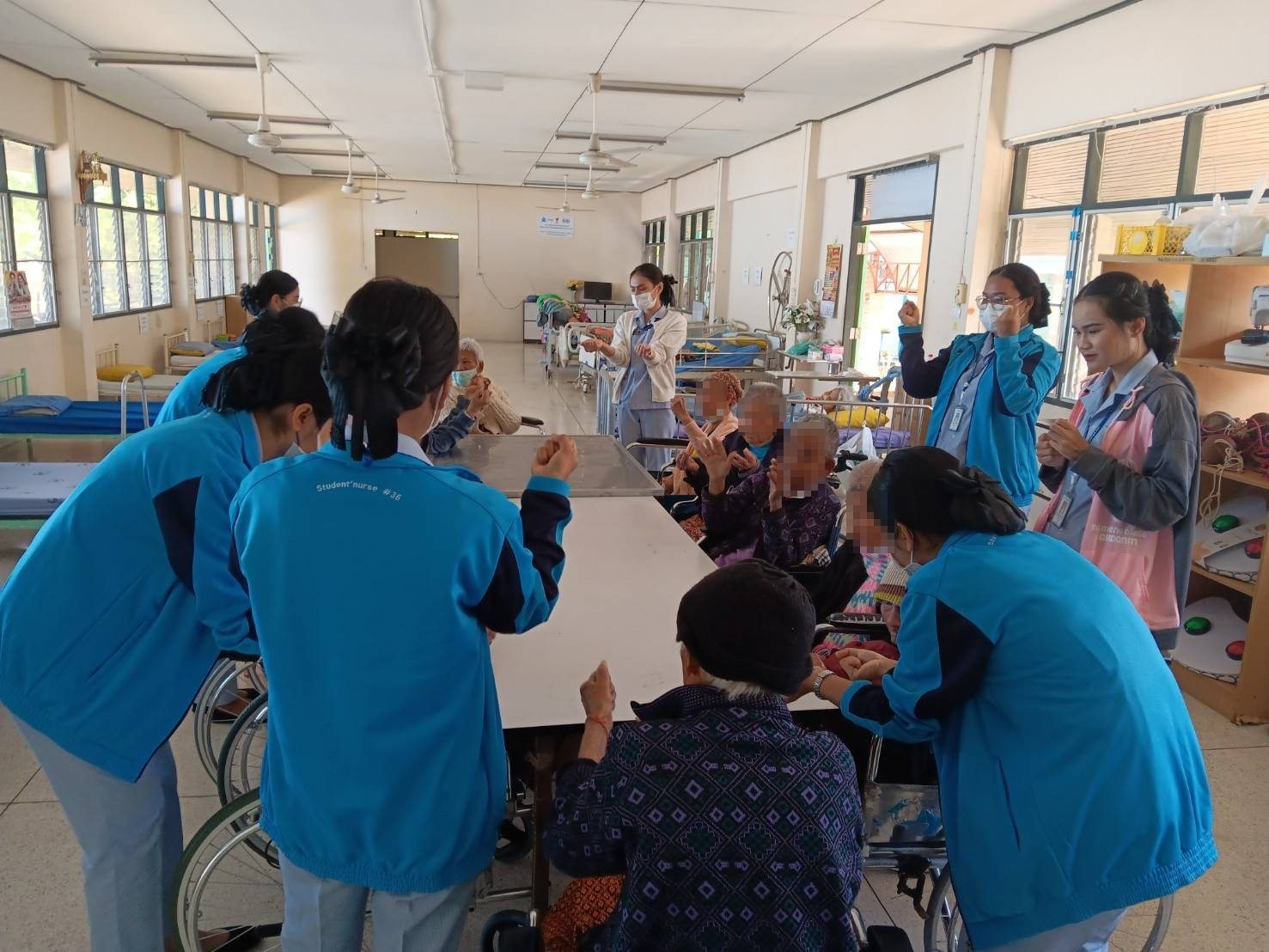 ศพส.บ้านบุรีรัมย์ ร่วมกับ นักศึกษาพยาบาลภาคปฏิบัติ หลักสูตรพยาบาลศาสตรบัณฑิต วิทยาลัยพยาบาลบรมราชชนนี สุรินทร์ จัดกิจกรรม สุขกาย สุขใจ วัยเก๋า โดยมีกิจกรรมสันทนาการ เพื่อส่งเสริมคุณภาพชีวิตของผู้สูงอายุ ลดความวิตกกังวล เกิดความสนุกสนาน