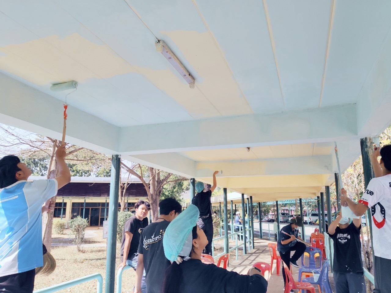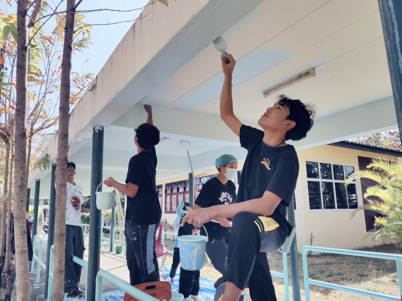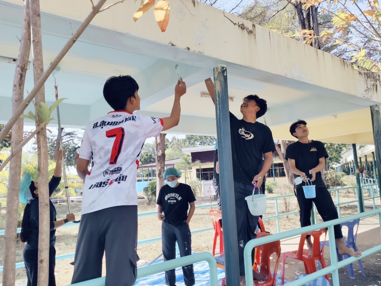 ศพส.บ้านบุรีรัมย์ ร่วมกับมหาวิทยาลัยราชภัฎบุรีรัมย์ ทำกิจกรรมจิตอาสา (ทาสีทางเชื่อมอาคาร) เพื่อส่งเสริมคุณค่าของเจ้าหน้าที่ในการมีจิตอาสา และเพื่อความสะอาด เป็นระเบียบ
