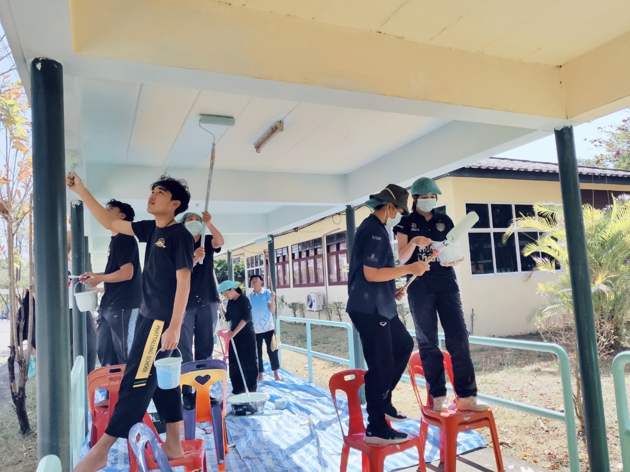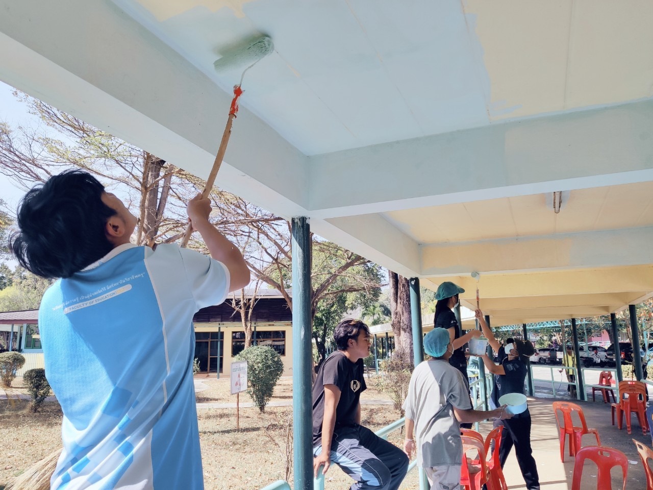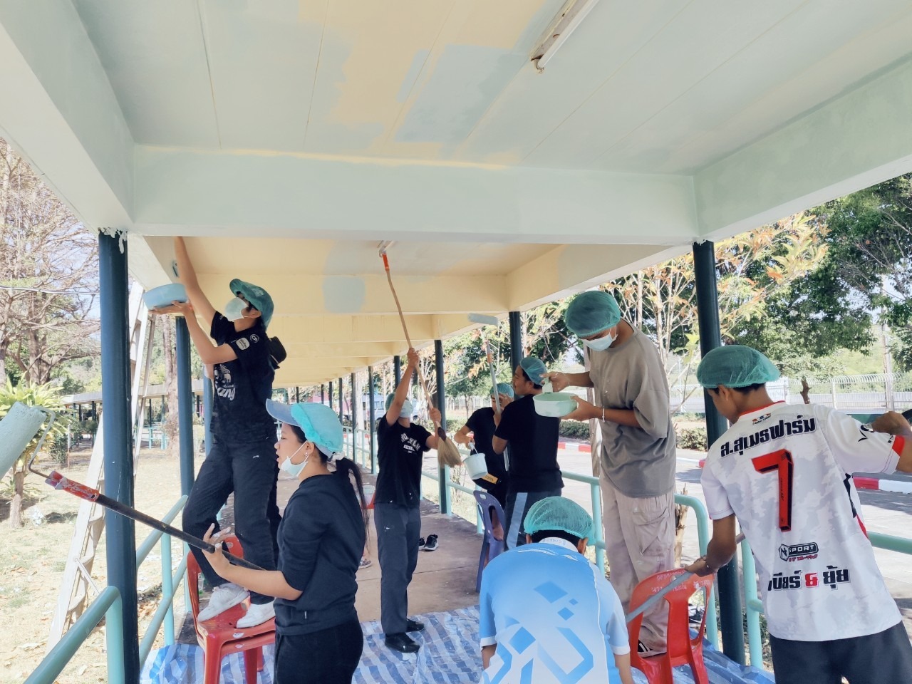 ศพส.บ้านบุรีรัมย์ ร่วมกับมหาวิทยาลัยราชภัฎบุรีรัมย์ ทำกิจกรรมจิตอาสา (ทาสีทางเชื่อมอาคาร) เพื่อส่งเสริมคุณค่าของเจ้าหน้าที่ในการมีจิตอาสา และเพื่อความสะอาด เป็นระเบียบ