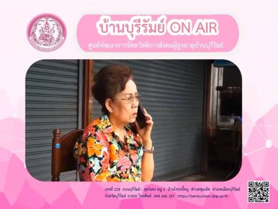 ศพส.บ้านบุรีรัมย์ จัดรายการ "บ้านบุรีรัมย์ ON AIR" โดยให้ความรู้ เรื่อง รู้ทันภัยออนไลน์ อาหารสุขภาพ ประชาสัมพันธ์โครงการประดิดประดอย ส่งเสริมอาชีพ การมีงานทำ สร้างรายได้สูงอายุ และร้านฝากขาย บ้านบุรีรัมย์บูติกผ่านทาง Facebook Live ศูนย์พัฒนาการจัดสวัสดิการสังคม ผู้สูงอายุบ้านบุรีรัมย์