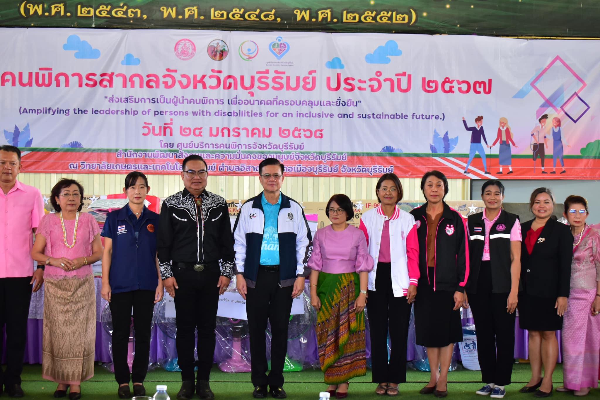 นางเจริญศรี วงค์สม ผู้อำนวยการ ศพส.บ้านบุรีรัมย์ ร่วมเป็นเกียรติเปิดงานวันคนพิการสากลจังหวัดบุรีรัมย์ประจำปี 2567 ณ วิทยาลัยเกษตรและเทคโนโลยีบุรีรัมย์ ตำบลอิสาณ อำเภอเมืองบุรีรัมย์ จังหวัดบุรีรัมย์ โดยมีนายเกรียงศักดิ์ สมจิต รองผู้ว่าราชการจังหวัดราชการจังหวัดบุรีรัมย์ เป็นประธาน