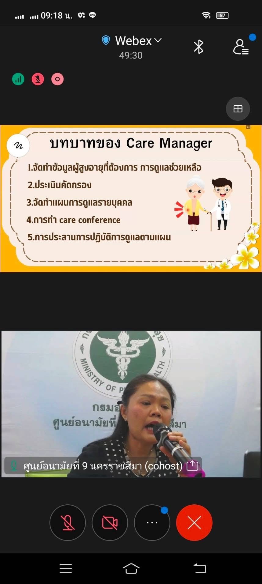 ศพส.บ้านบุรีรัมย์ โดยกลุ่มส่งเสริมสวัสดิการและคุ้มครองทางสังคม เข้าร่วมอบรมหลักสูตร care manager 70 ชั่วโมง เพื่อพัฒนาทักษะความรู้ความสามารถของบุคลากรในการปฏิบัติงานในบทบาทของ care manager พร้อมทั้งสามารถนำไปสู่การจัดการบริหารงานของ caregiver ให้มีความรู้ความเข้าใจเนื้อหาในกระบวนการปฏิบัติงานที่มีองค์ความรู้ที่ทันสมัย เพื่อให้เกิดประสิทธิภาพและประสิทธิผลของการดำเนินงานที่มีคุณภาพ สนับสนุนให้เกิดการดูแลผู้สูงอายุระยะยาวในชุมชนให้เป็นรูปประธรรมที่มีความต่อเนื่องและยั่งยืน ผ่านระบบ zoom meeting