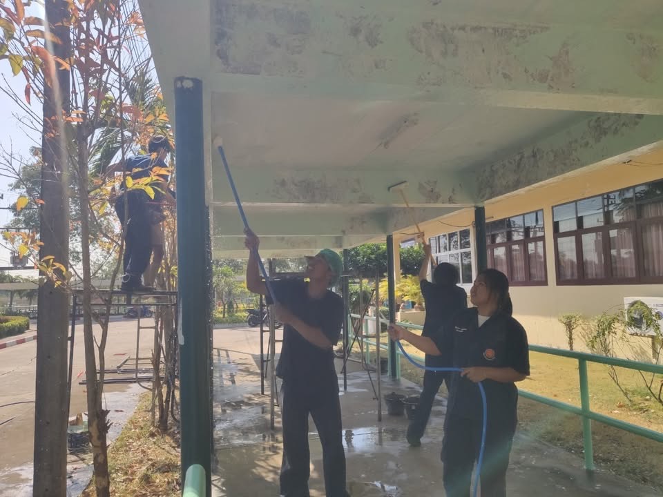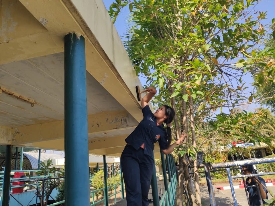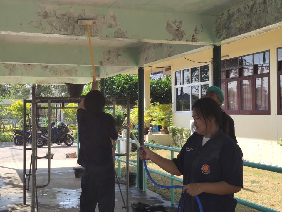กิจกรรมจิตอาสา (ขัดสี-ทาสี ทางเชื่อมอาคาร ทำความสะอาดตัดแต่งกิ่งไม้บริเวณหน้า ศพส.) เพื่อส่งเสริมคุณค่าของเจ้าหน้าที่ในการมีจิตอาสา และเพื่อ