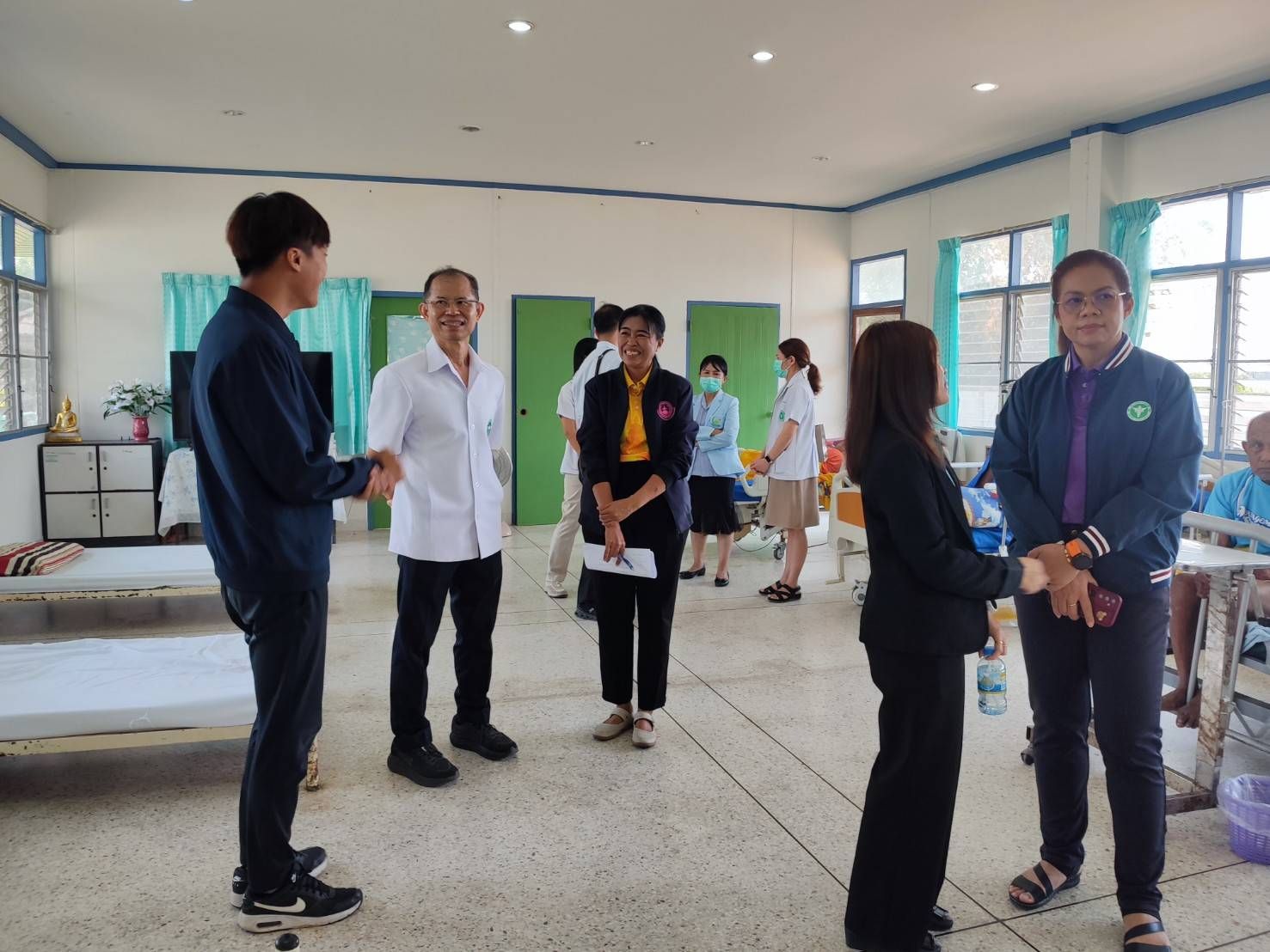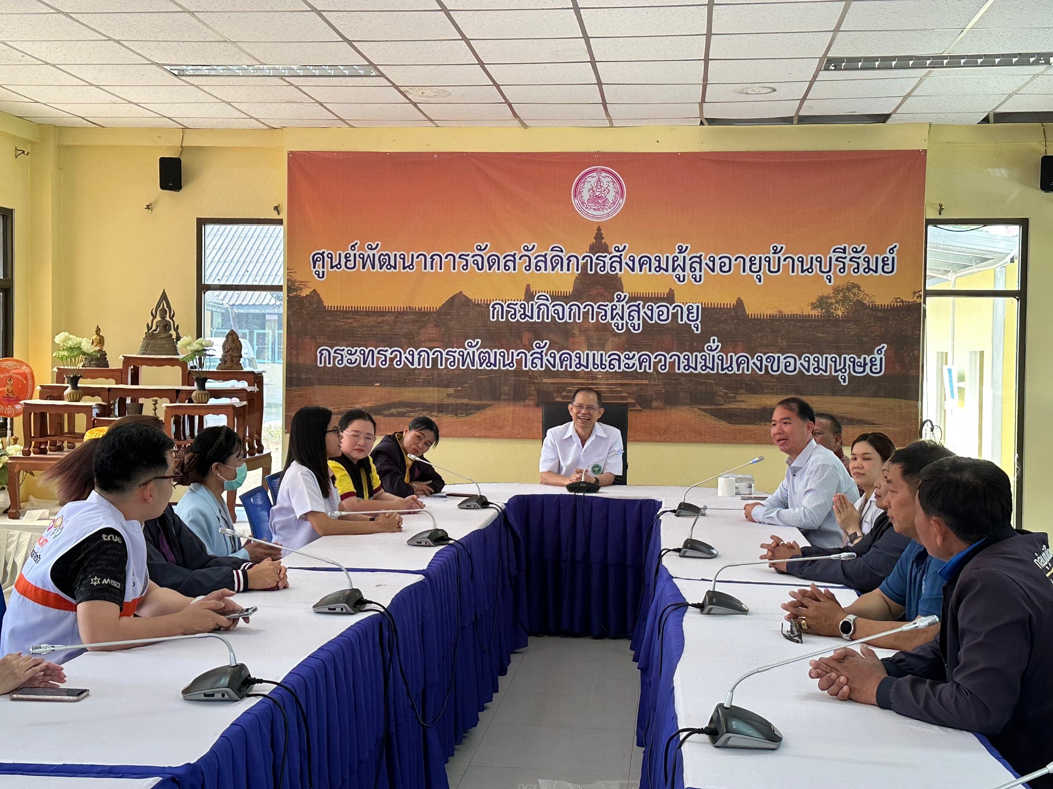 ศพส.บ้านบุรีรัมย์ ต้อนรับคณะผู้ตรวจราชการกระทรวงสาธารณสุข เขตสุขภาพที่ 9 นำโดย นายแพทย์สุกิจ พรหมรับ รองผู้อำนวยการฝ่ายการแพทย์ โรงพยาบาลชัยภูมิ พร้อมคณะทีม สสจ.บุรีรัมย์ โรงพยาบาลบุรีรัมย์ และ ร.ต.ต.สมชาย ภิรมย์ชาติ นายกเทศมนตรีเมืองชุมเห็ด พร้อมด้วยคณะผู้บริหาร ลงพื้นที่ตรวจเยี่ยมการดำเนินงานสถานชีวาภิบาลในศูนย์พัฒนาการจัดสวัสดิการสังคมผู้สูงอายุบ้านบุรีรัมย์ และเยี่ยมเยียนให้กำลังใจผู้สูงอายุ ณ ศพส.บ้านบุรีรัมย์