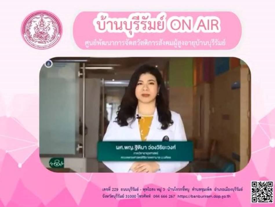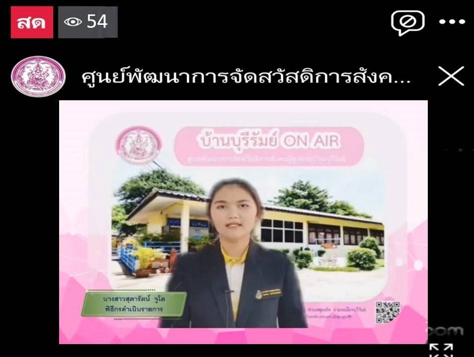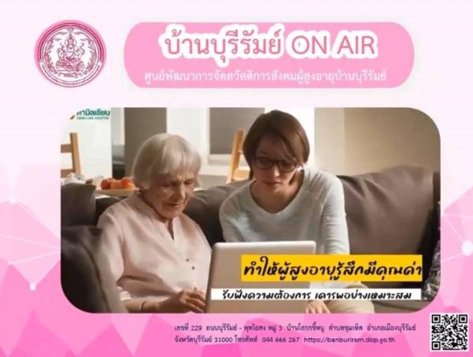 โดยให้ความรู้ เรื่อง ภารกิจพิชิตความสุขของผู้สูงอายุ ประชาสัมพันธ์โครงการประดิดประดอย ส่งเสริมอาชีพ การมีงานทำ สร้างรายได้สูงอายุ และร้านฝากขาย บ้านบุรีรัมย์บูติกผ่านทาง Facebook Live ศูนย์พัฒนาการจัดสวัสดิการสังคมผู้สูงอายุบ้านบุรีรัมย์