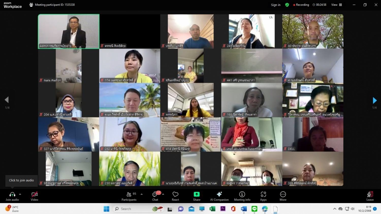 นางเจริญศรี วงค์สม ผู้อำนวยการ ศพส.บ้านบุรีรัมย์ เข้าร่วมอบรมเชิงปฏิบัติการเสริมสร้างทักษะความรู้หลักสูตรการดูแลผู้สูงอายุขั้นเบื้องต้น จำนวน 18 ชั่วโมง รุ่นที่ 3 ในรูปเเบบออนไลน์ zoom meeting โดยมี นายธนสุนทร สว่างสาลี อธิบดีกรมกิจการผู้สูงอายุ เป็นประธานเปิดโครงการฯ