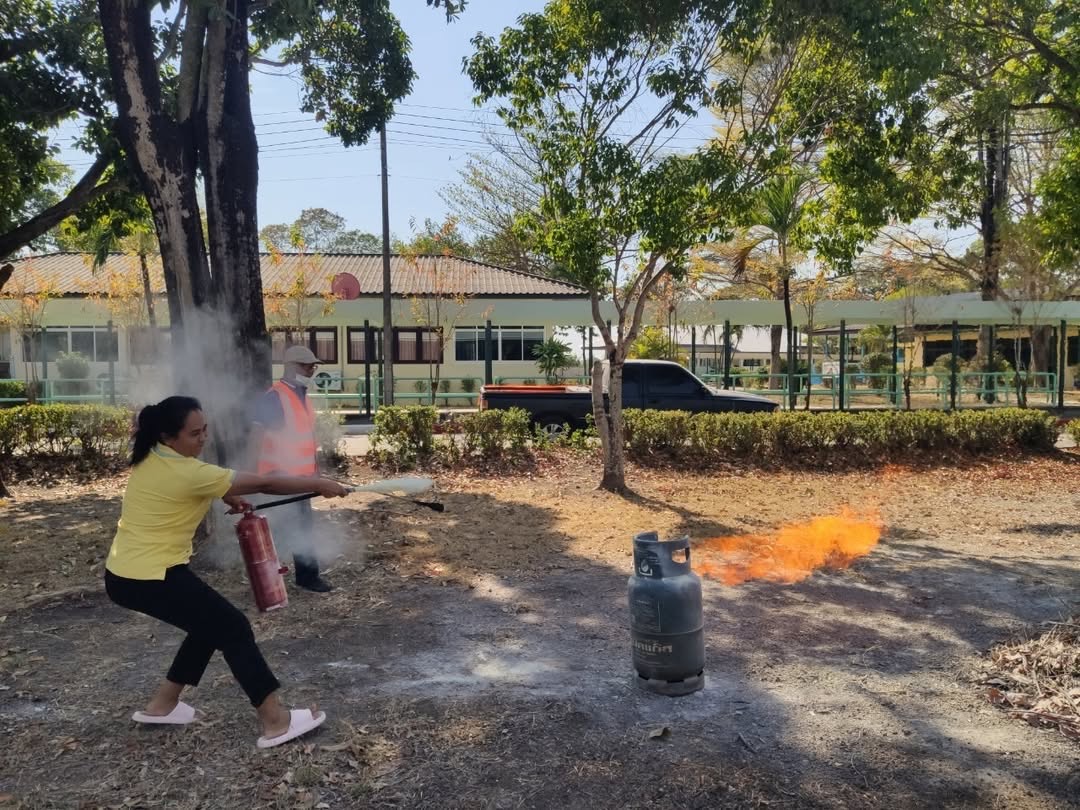 ศพส.บ้านบุรีรัมย์ ข้าราชการ เจ้าหน้าที่ อบรมดับเพลิงขั้นต้น เพื่อให้เจ้าหน้าที่ทราบขั้นตอนการปฏิบัติเมื่อเกิดเหตุการณ์เพลิงไหม้