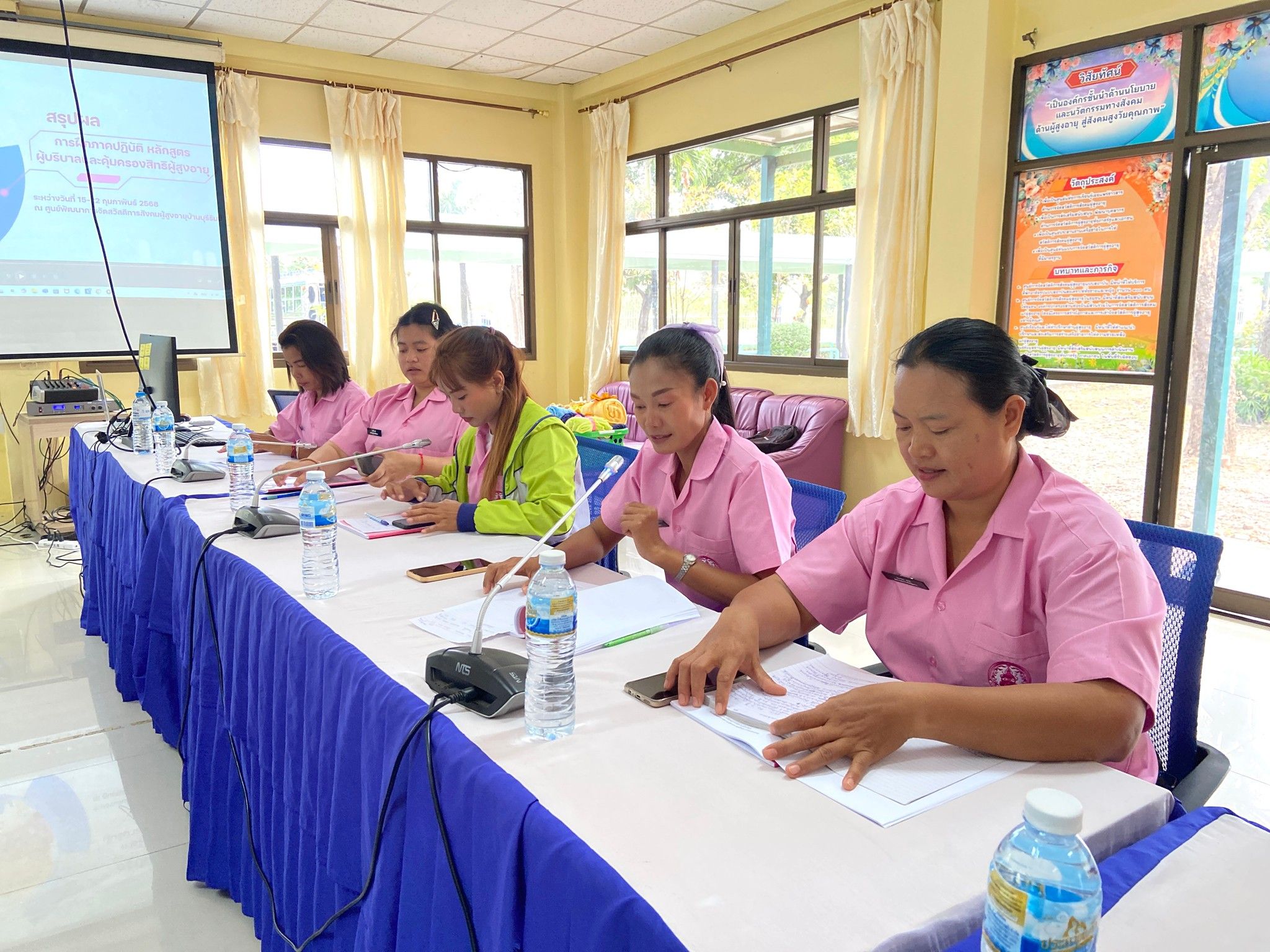 ศพส.บ้านบุรีรัมย์ ประชุมถอดบทเรียน การฝึกภาคปฏิบัติ หลักสูตรผู้บริบาลและคุ้มครองสิทธิผู้สูงอายุ ณ ห้องประชุม happy home