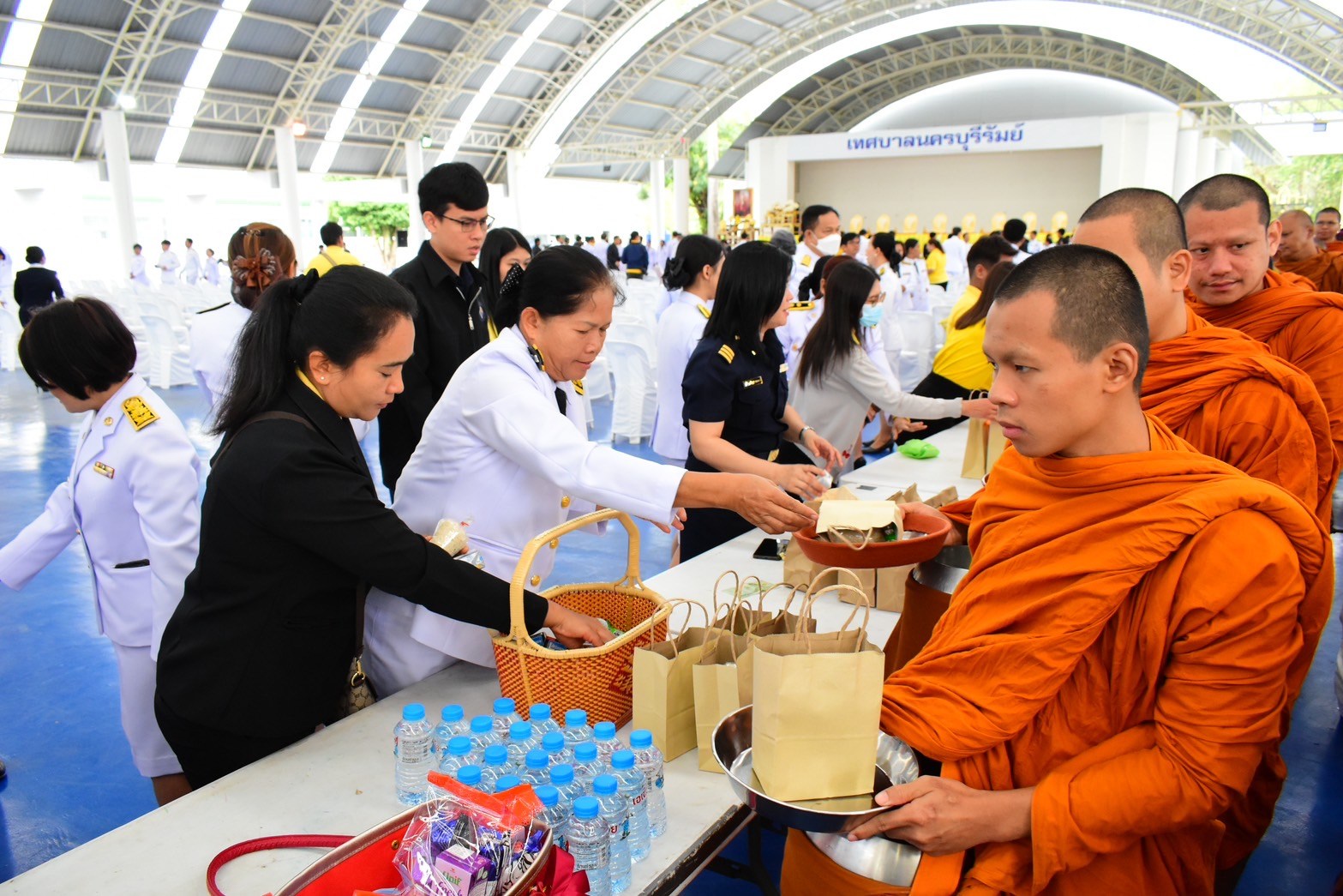 พิธีสวดพระพุทธมนต์ และทำบุญตักบาตร พระภิกษุ-สามเณร 57 รูป ถวายเป็นพระราชกุศลเนื่องในวันที่ระลึก พระบาทสมเด็จพระพุทธเลิศหล้านภาลัย
