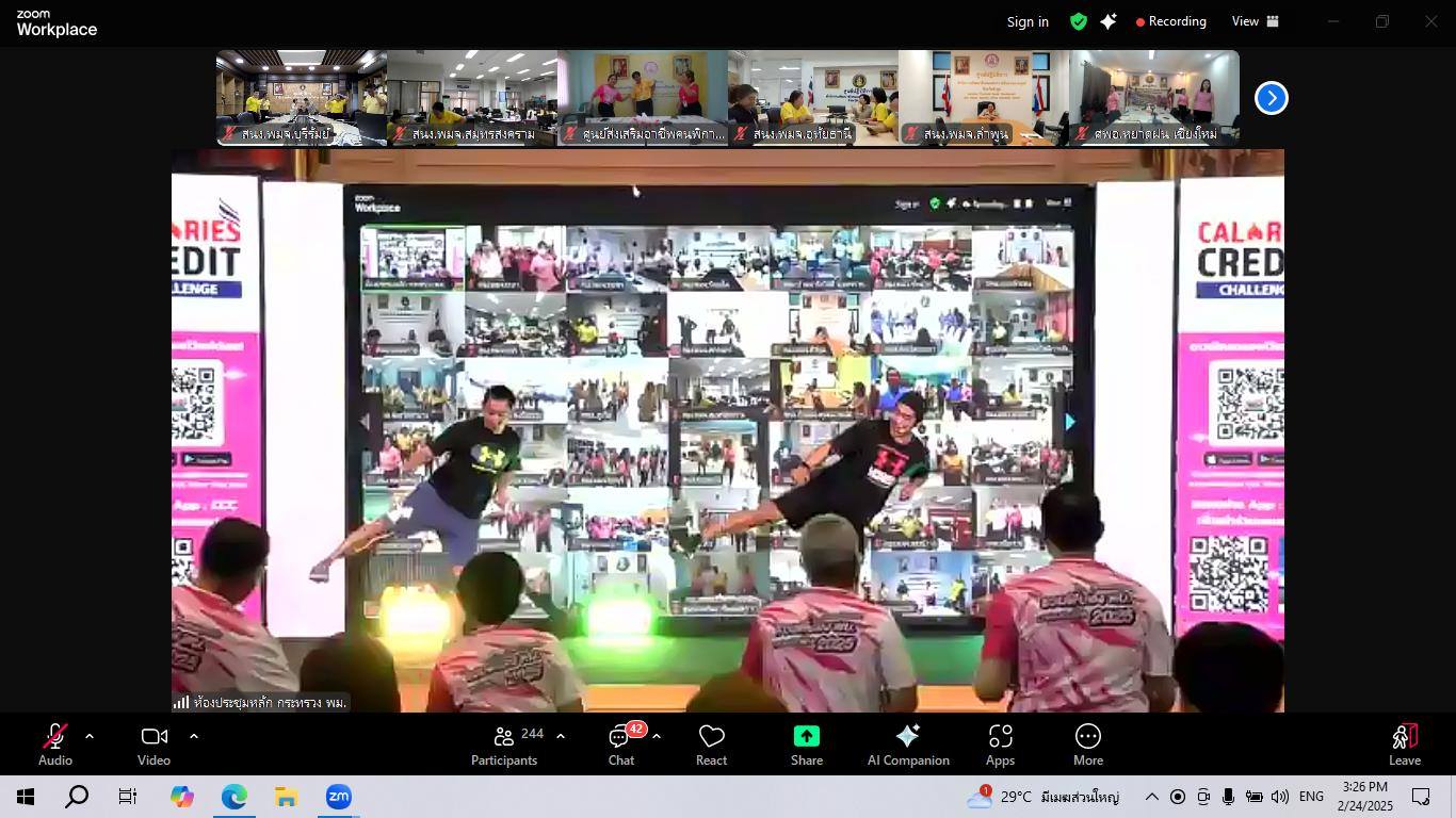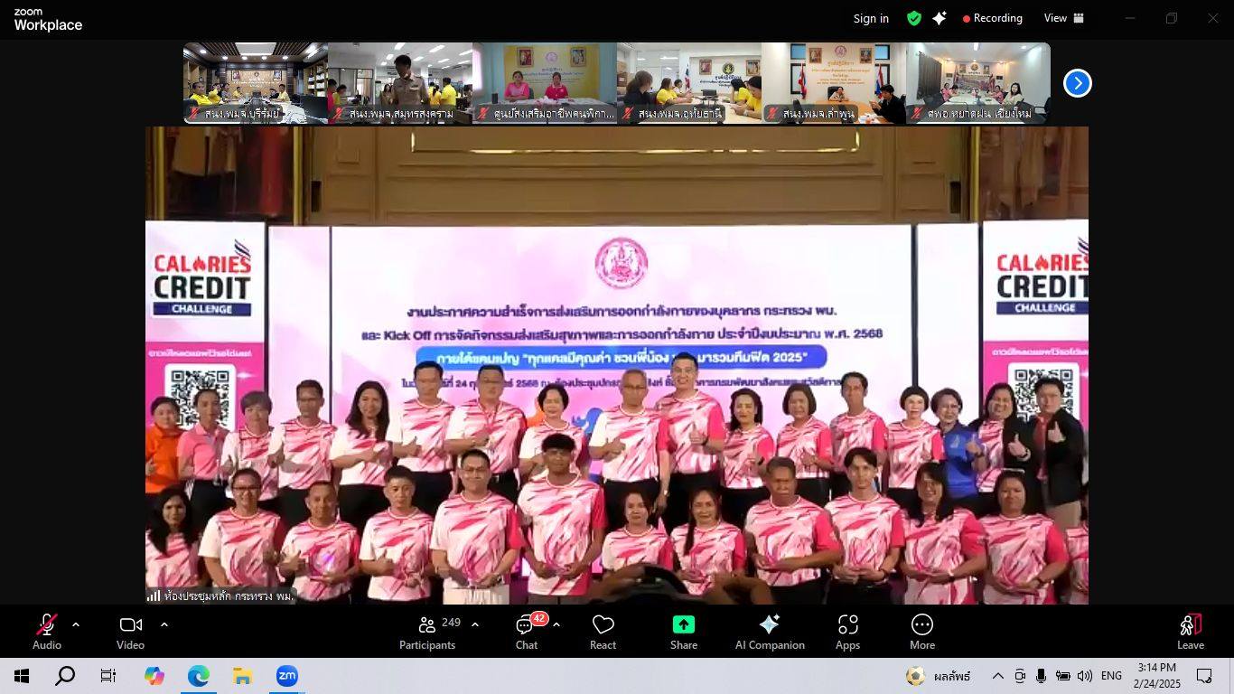 ศพส.บ้านบุรีรัมย์ ร่วมการจัดงานประกาศความสำเร็จการส่งเสริมการออกกำลังกายของบุคลากร กระทรวง พม. และ kick off การจัดกิจกรรมส่งเสริมสุขภาพ และการออกกำลังกาย ประจำปีงบประมาณ พ.ศ. 2568 ภายใต้แคมเปญ “ทุกแคลมีคุณค่า ชวนพี่น้อง พม. มารวมทีมฟิต 2025” ผ่านระบบ zoom meeting ณ ศพส.บ้านบุรีรัมย์ โดยมีนายอนุกูล ปีดแก้ว ปลัดกระทรวงการพัฒนาสังคมและความมั่นคงของมนุษย์ เป็นประธาน