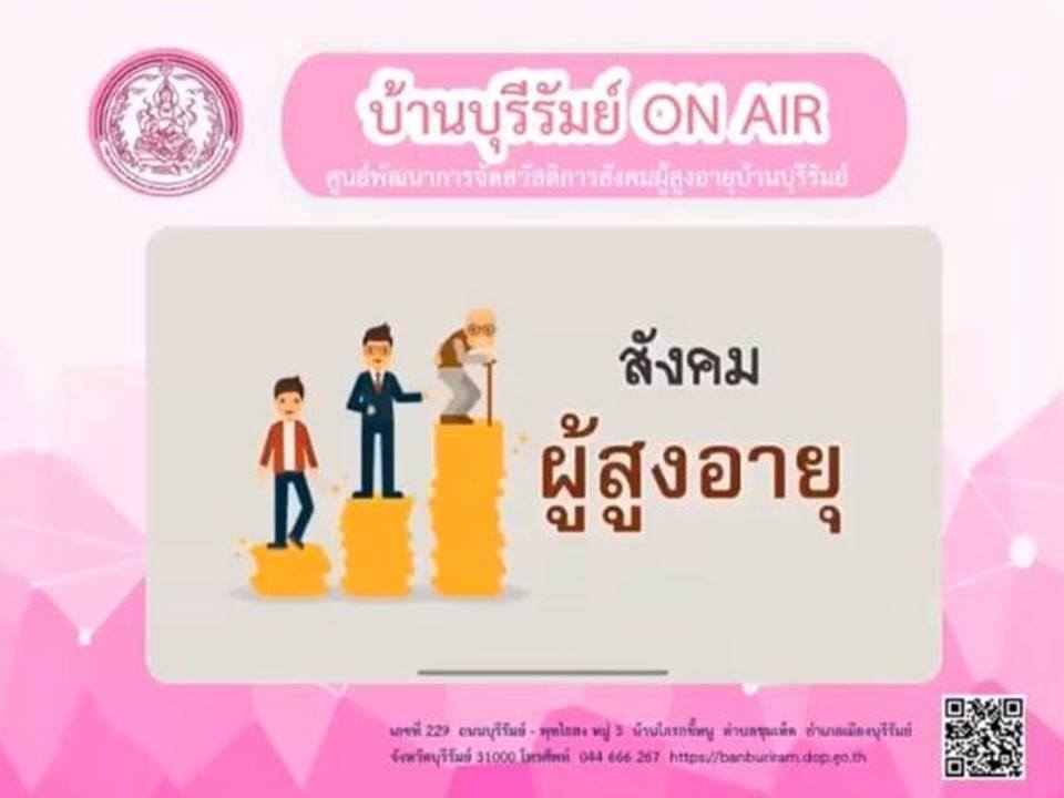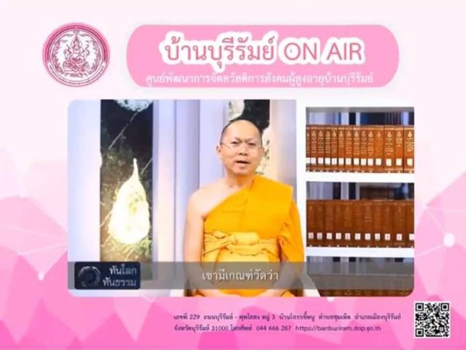 ศพส.บ้านบุรีรัมย์ จัดรายการ "บ้านบุรีรัมย์ ON AIR" โดยให้ความรู้ เรื่องธรรมะข้างเตียงสังคมสูงวัย ประชาสัมพันธ์โครงการ ประดิดประดอย ส่งเสริมอาชีพ การมีงานทำ สร้างรายได้สูงอายุ และร้านฝากขาย บ้านบุรีรัมย์บูติกผ่านทาง Facebook Live ศูนย์พัฒนาการจัดสวัสดิการสังคมผู้สูงอายุบ้านบุรีรัมย์