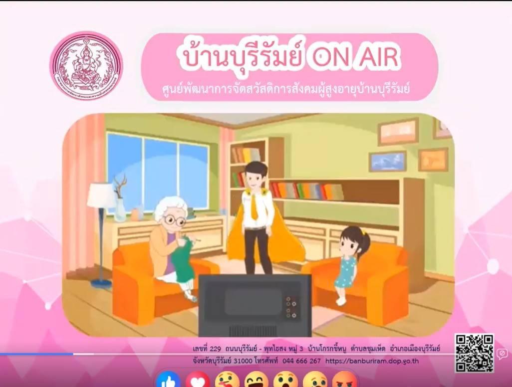 ศพส.บ้านบุรีรัมย์ จัดรายการ "บ้านบุรีรัมย์ ON AIR" โดยให้ความรู้ เรื่อง สิทธิ สวัสดิการผู้สูงอายุ ประชาสัมพันธ์โครงการ ประดิดประดอย ส่งเสริมอาชีพ การมีงานทำ สร้างรายได้สูงอายุ และร้านฝากขาย บ้านบุรีรัมย์บูติกผ่านทาง Facebook Live ศูนย์พัฒนาการจัดสวัสดิการสังคมผู้สูงอายุบ้านบุรีรัมย์