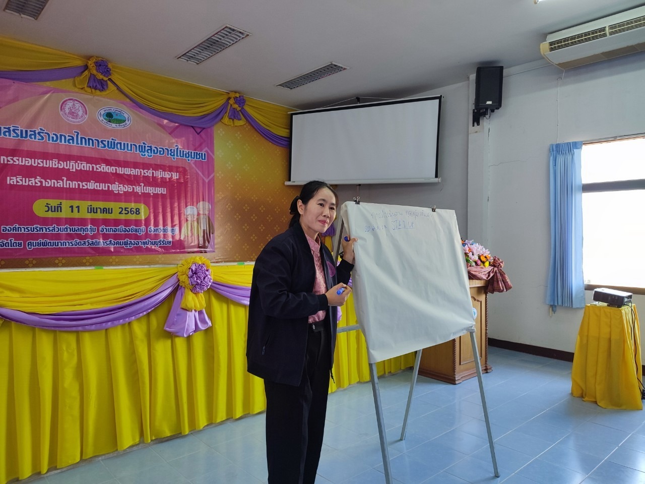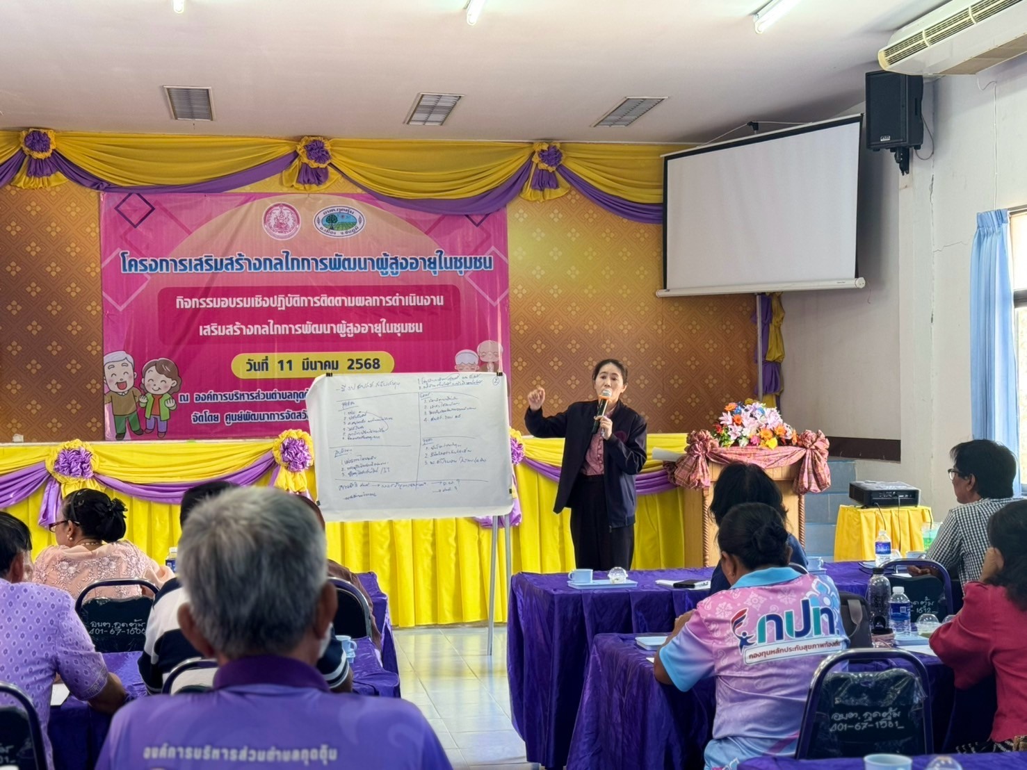 โครงการเสริมสร้างกลไกการพัฒนาผู้สูงอายุในชุมชน กิจกรรมประชุมเชิงปฏิบัติการติดตามผลการดำเนินงานเสริมสร้างกลไกการพัฒนาผู้สูงอายุในชุมชน