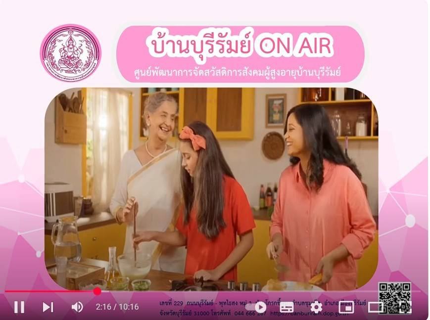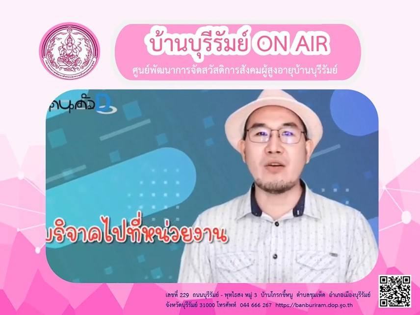 ศพส.บ้านบุรีรัมย์ จัดรายการ "บ้านบุรีรัมย์ ON AIR" โดยให้ความรู้ เรื่อง วิธีลดความเครียด และการป้องกันการถูกหลอกบริจาคเงิน ประชาสัมพันธ์โครงการ ประดิดประดอย ส่งเสริมอาชีพ การมีงานทำ สร้างรายได้สูงอายุ และร้านฝากขาย บ้านบุรีรัมย์บูติกผ่านทาง Facebook Live ศูนย์พัฒนาการจัดสวัสดิการสังคมผู้สูงอายุบ้านบุรีรัมย์