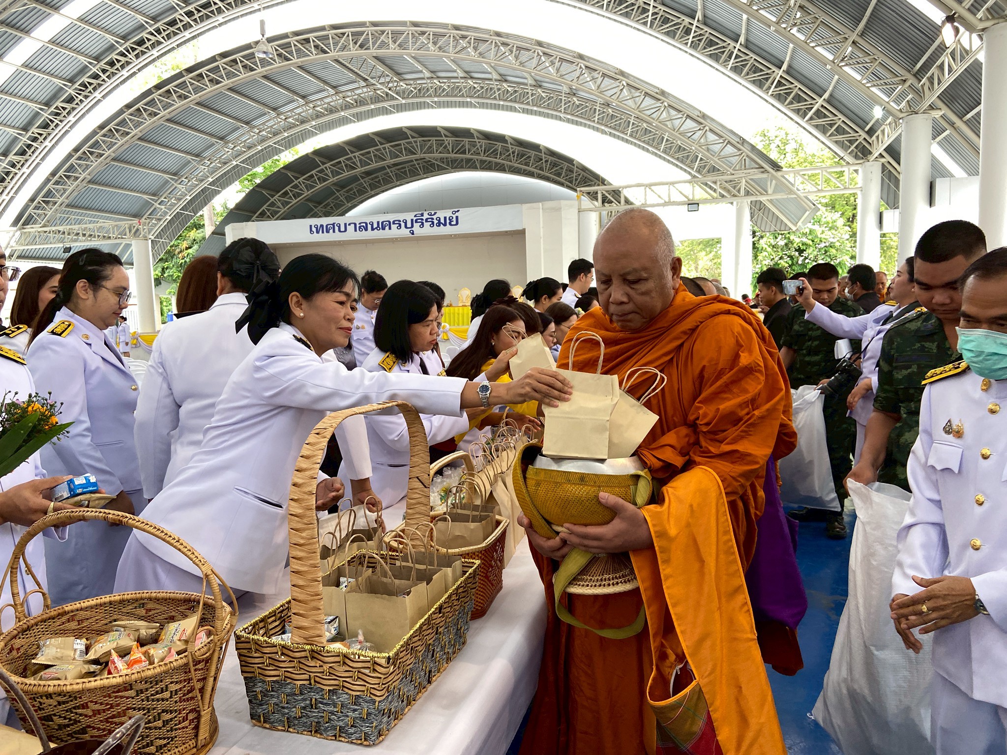 พิธีสวดพระพุทธมนต์และทำบุญตักบาตรถวายพระราชกุศลและพิธีวางพุ่มดอกไม้และถวายราชสดุดี เนื่องในวันรัฐพิธีวันที่ระลึก "พระบาทสมเด็จพระนั่งเกล้าเจ้าอยู่หัวพระมหาเจษฎาราชเจ้า" จังหวัดบุรีรัมย์