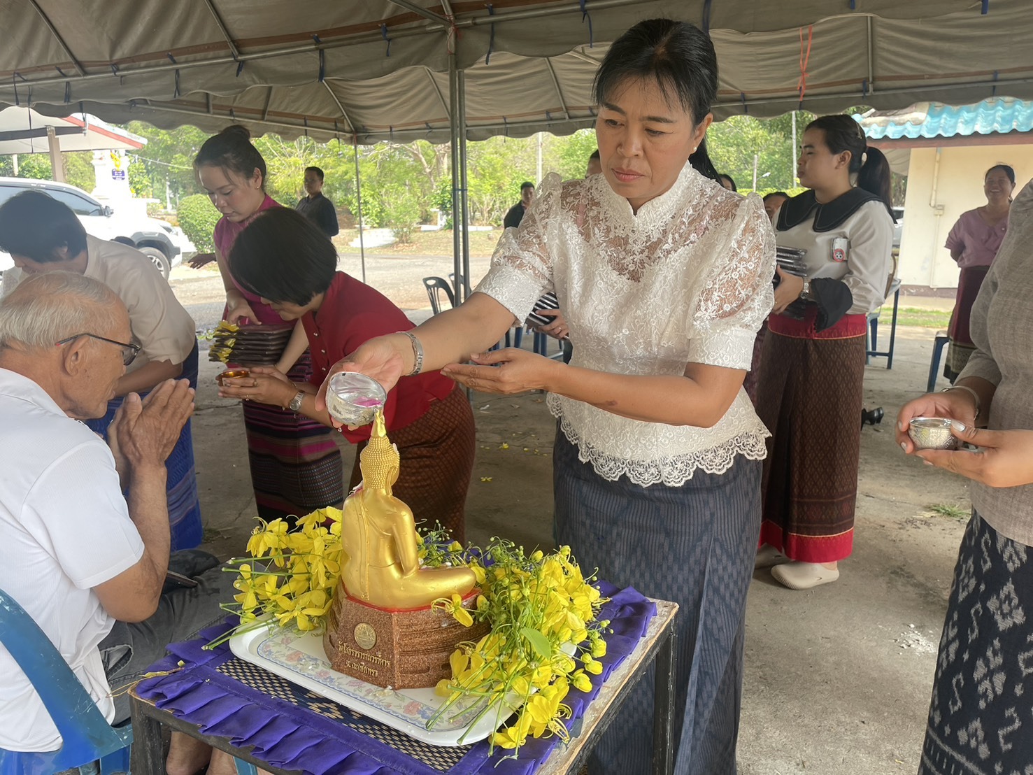 ศพส.บ้านบุรีรัมย์ ร่วมพิธีบวงสรวงพระภูมิเจ้าที่ พระประชาบดี และพิธีทำบุญตักบาตรอุทิศส่วนกุศลให้ข้าราชการ - เจ้าหน้าที่ และประชาชนผู้เสียชีวิต งาน “วันรำลึกวีระชนคนนิคมบ้านกรวด 8 เมษายน 2521” ณ ห้องประชุมนิคมสร้างตนเองบ้านกรวด จังหวัดบุรีรัมย์