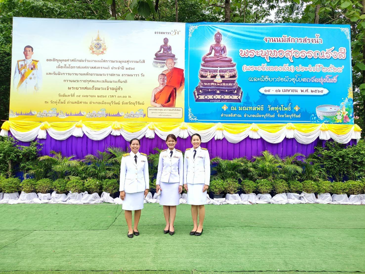 ศพส.บ้านบุรีรัมย์ ร่วมงานนมัสการพิธีสรงน้ำพระพุทธสุวรรณรังสี (พระเจ้าทองล้น) ประจำปี 2568 ณ มณฑลพิธี วัดทุ่งโพธิ์ ตำบลอิสาณ อำเภอเมือง จังหวัดบุรีรัมย์ โดยมีนายปิยะ ปิจนำ ผู้ว่าราชการจังหวัดบุรีรัมย์ เป็นประธาน