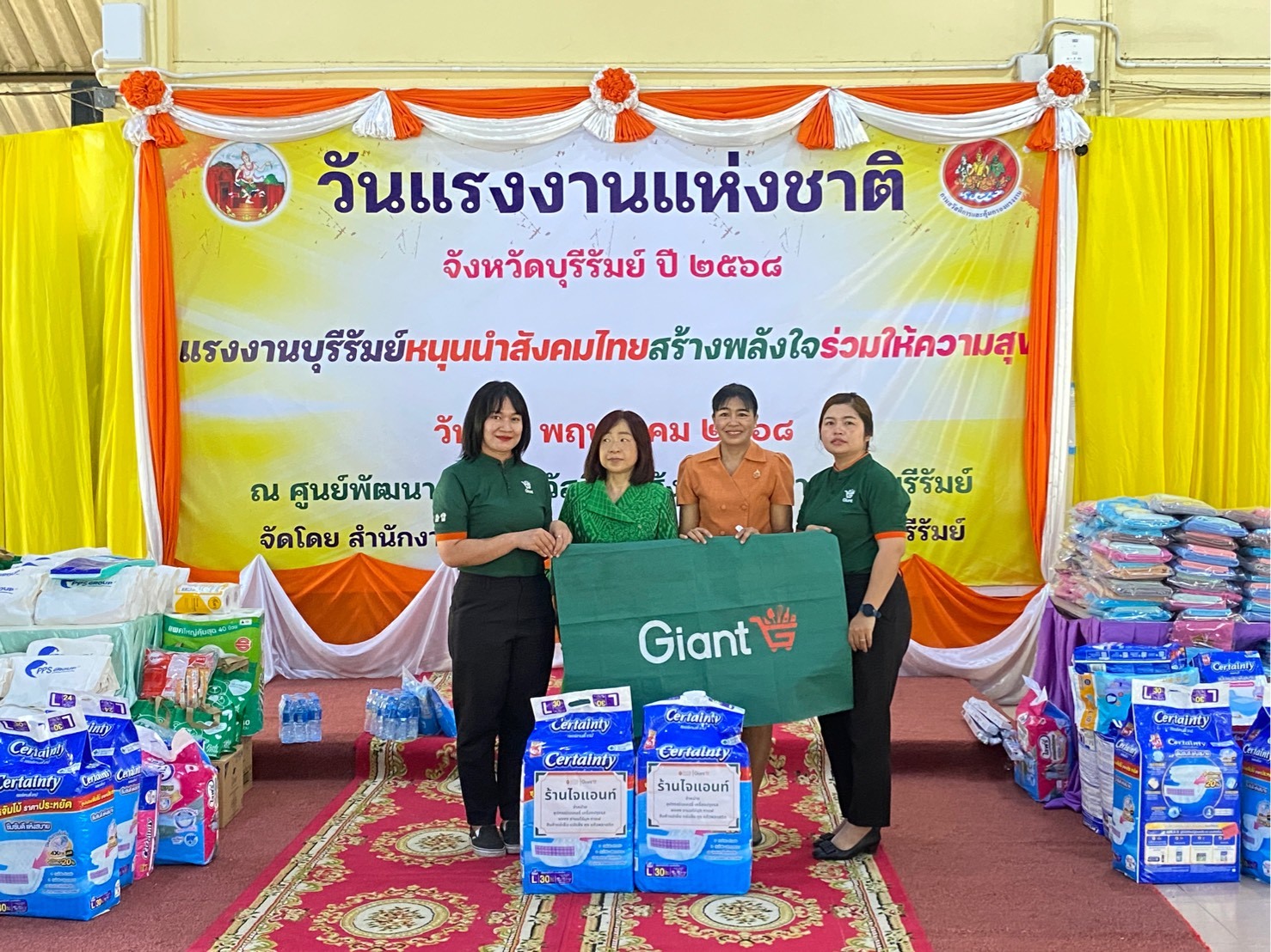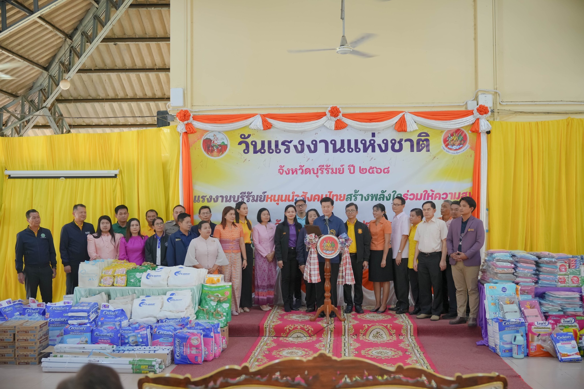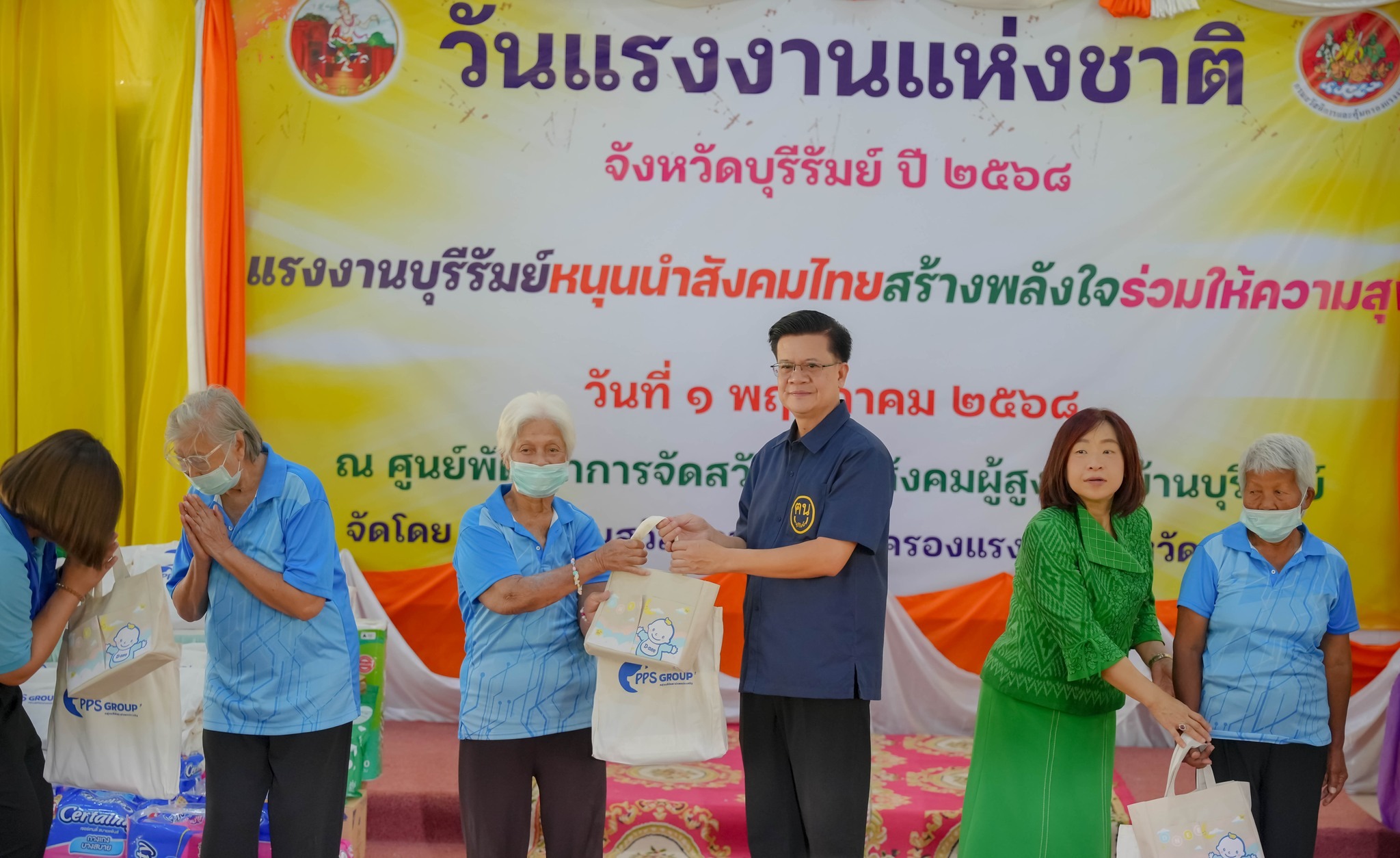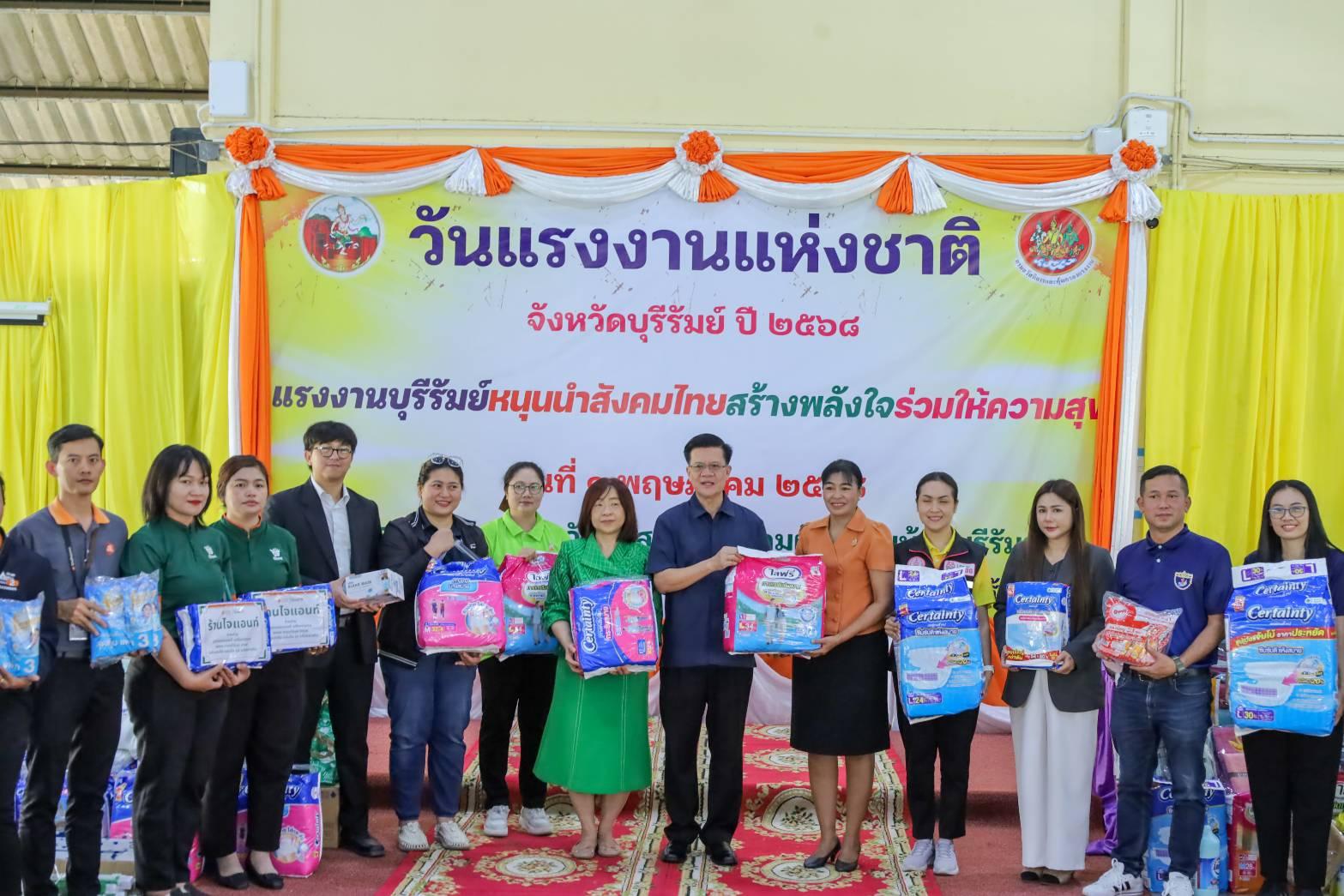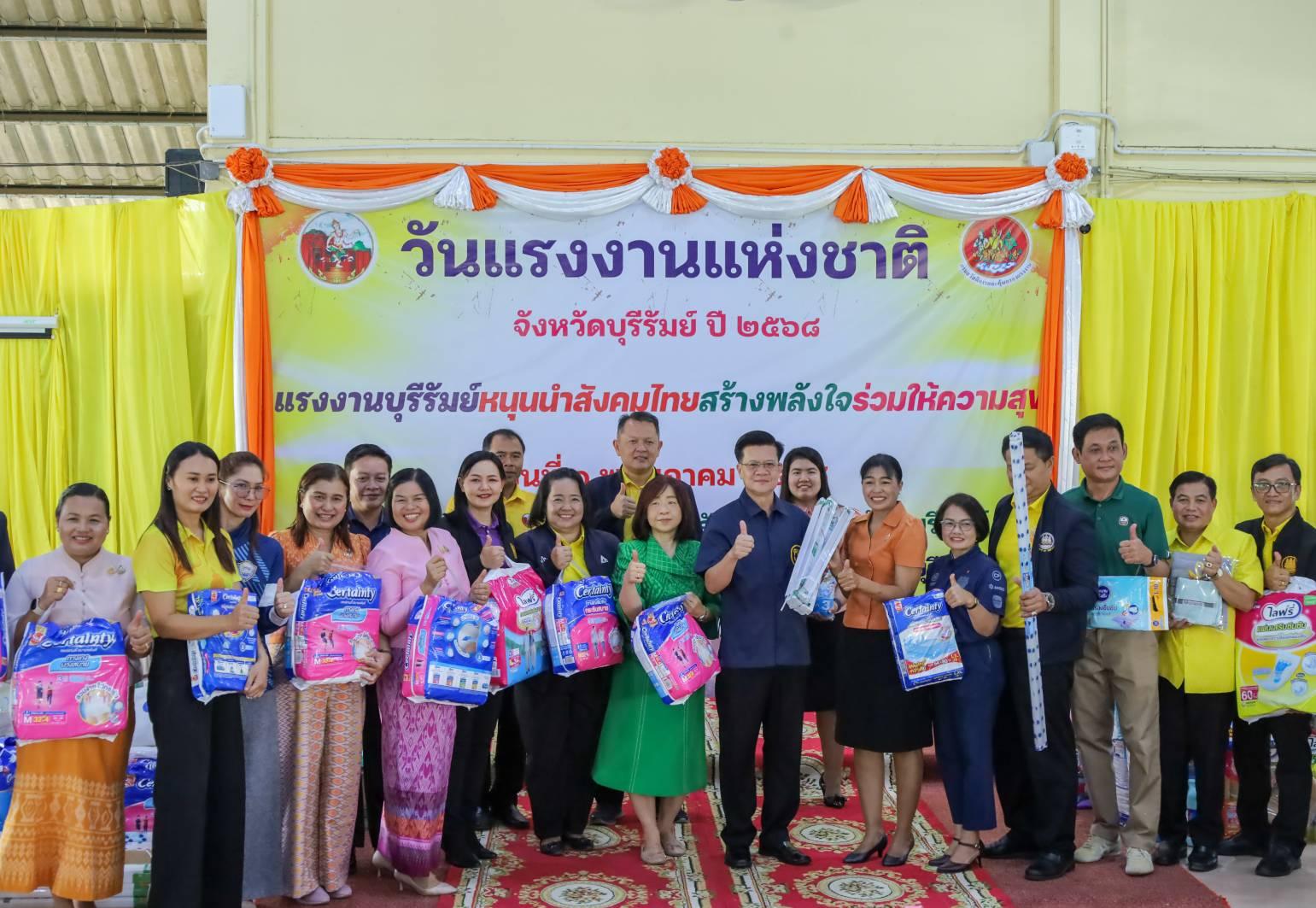 ศพส.บ้านบุรีรัมย์ ร่วมงานวันแรงงานแห่งชาติ จังหวัดบุรีรัมย์ ประจำปี 2568 “แรงงานบุรีรัมย์หนุนนำสังคมไทย สร้างพลังใจร่วมให้ความสุข” พร้อมรับมอบของอุปโภค-บริโภค ที่จำเป็นให้แก่ผู้สูงอายุ ณ ศูนย์พัฒนาการจัดสวัสดิการสังคมผู้สูงอายุบ้านบุรีรัมย์ โดยมี นายเกรียงศักดิ์ สมจิต รองผู้ว่าราชการจังหวัดบุรีรัมย์ เป็นประธานในพิธี