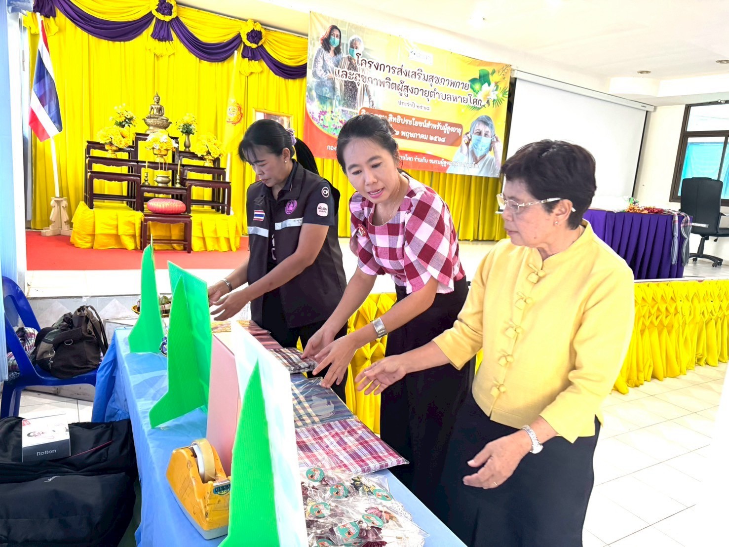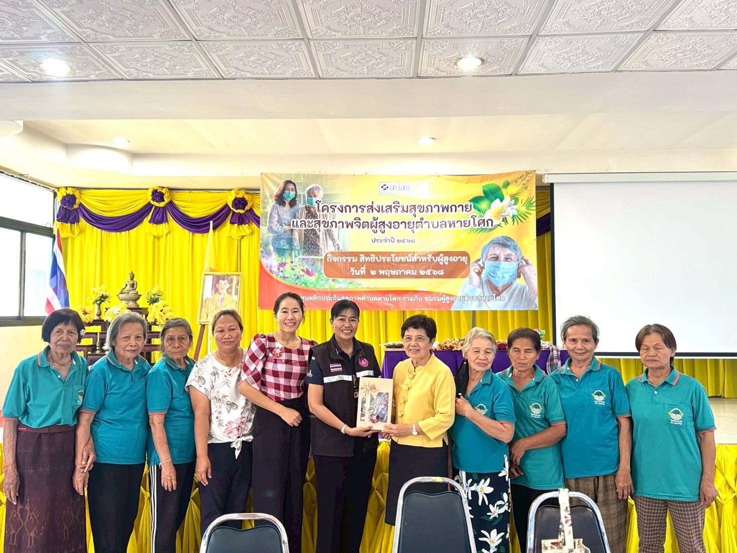 ศพส.บ้านบุรีรัมย์ เป็นวิทยากรโครงการส่งเสริมสุขภาพกายและสุขภาพจิตผู้สูงอายุ ประจำปี 2568 โดยบรรยายหัวข้อกฎหมายและสิทธิประโยชน์สำหรับผู้สูงอายุ การจัดสภาพแวดล้อมผู้สูงอายุ และฝึกปฏิบัติการทำพวงมาลัยจากผ้าขาวม้า ณ อาคารเอนกประสงค์องค์การบริหารส่วนตำบลหายโศก อำเภอพุทไธสง จังหวัดบุรีรัมย์