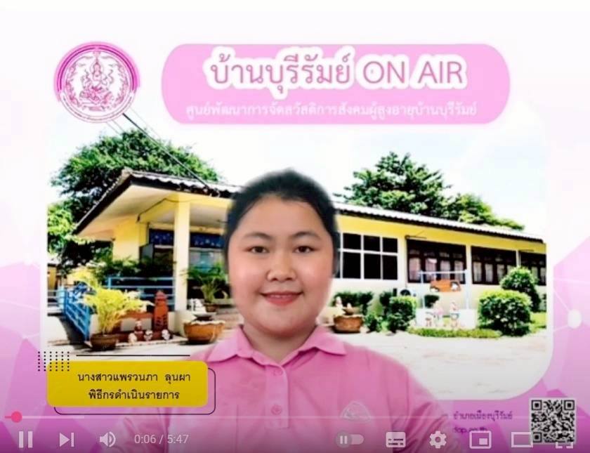 ศพส.บ้านบุรีรัมย์ จัดรายการ "บ้านบุรีรัมย์ ON AIR" โดยให้ความรู้ เรื่อง ศพส.บ้านบุรีรัมย์ หน่วยบริการที่รับการส่งต่อเฉพาะด้านสถานชีวาภิบาล ประชาสัมพันธ์โครงการ ประดิดประดอย ส่งเสริมอาชีพ การมีงานทำ สร้างรายได้สูงอายุ และร้านฝากขาย บ้านบุรีรัมย์บูติกผ่านทาง Facebook Live ศูนย์พัฒนาการจัดสวัสดิการสังคมผู้สูงอายุบ้านบุรีรัมย์