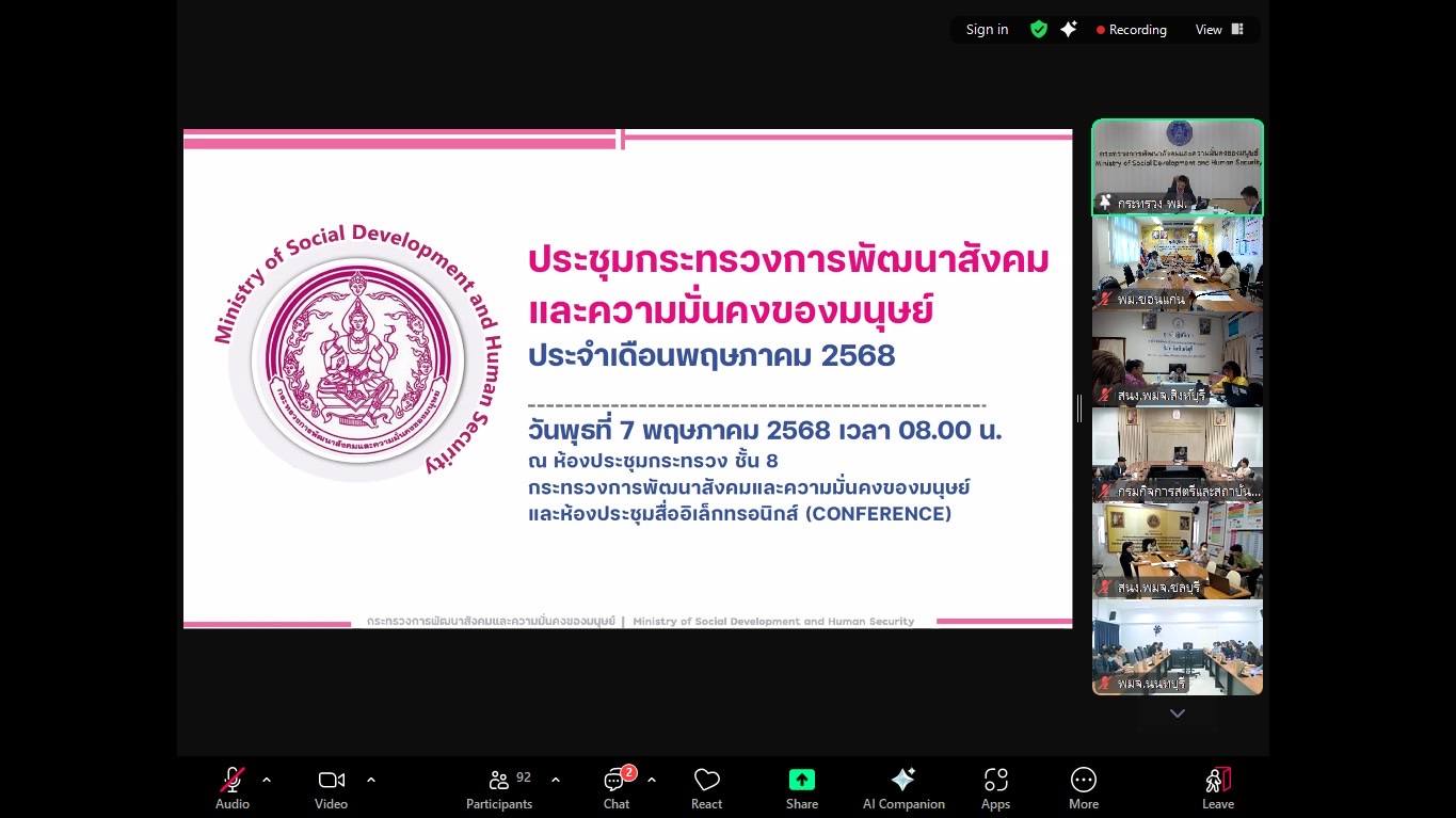 ประชุมกระทรวงการพัฒนาสังคมและความมั่นคงของมนุษย์ ประจำเดือนพฤษภาคม 2568