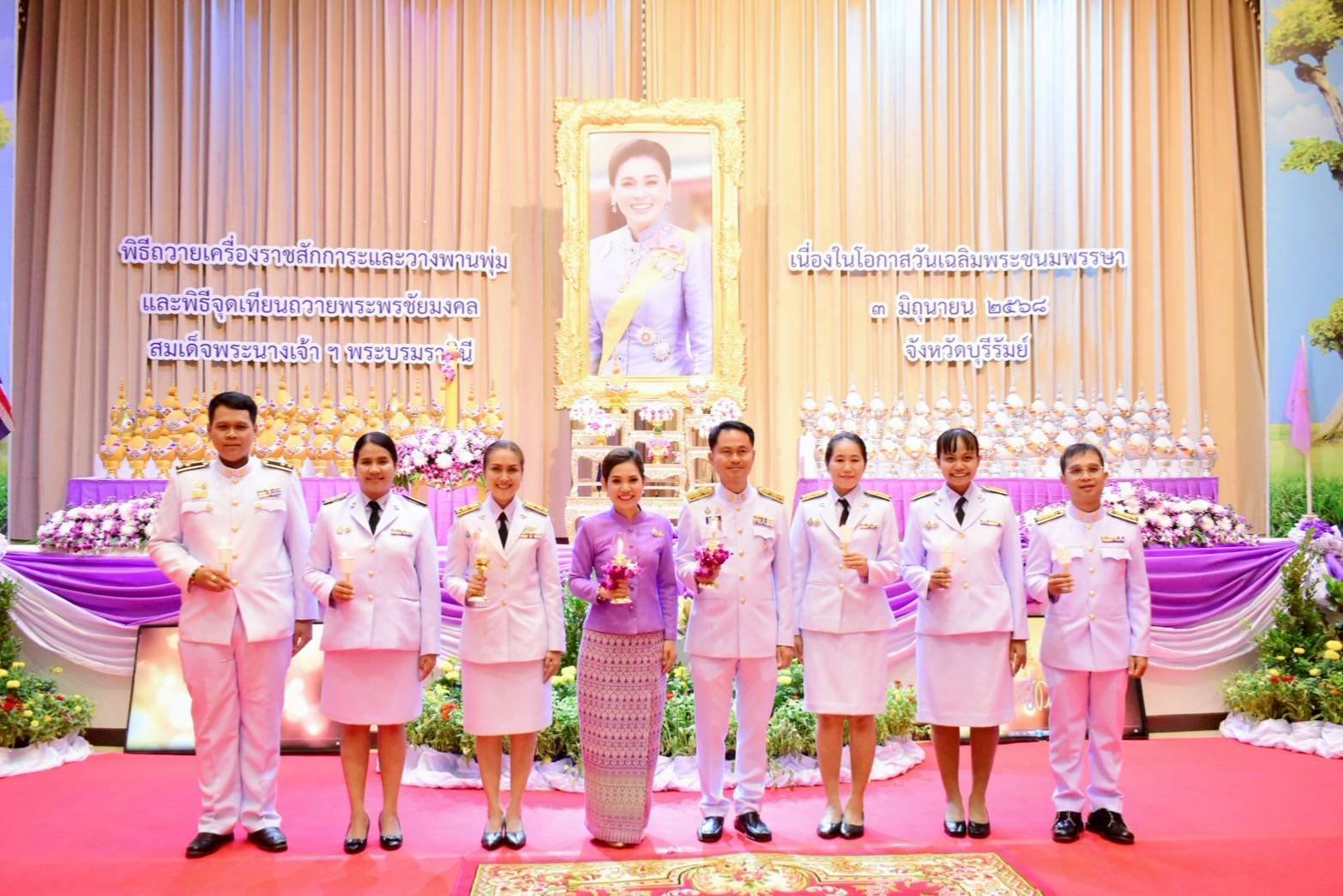 พิธีถวายเครื่องราชสักการะวางพานพุ่ม และพิธีจุดเทียนถวายพระพรชัยมงคล เนื่องในโอกาสวันเฉลิมพระชนมพรรษา สมเด็จพระนางเจ้าสุทิดา พัชรสุธาพิมลลักษณ พระบรมราชินี ณ หอประชุมจังหวัดบุรีรัมย์