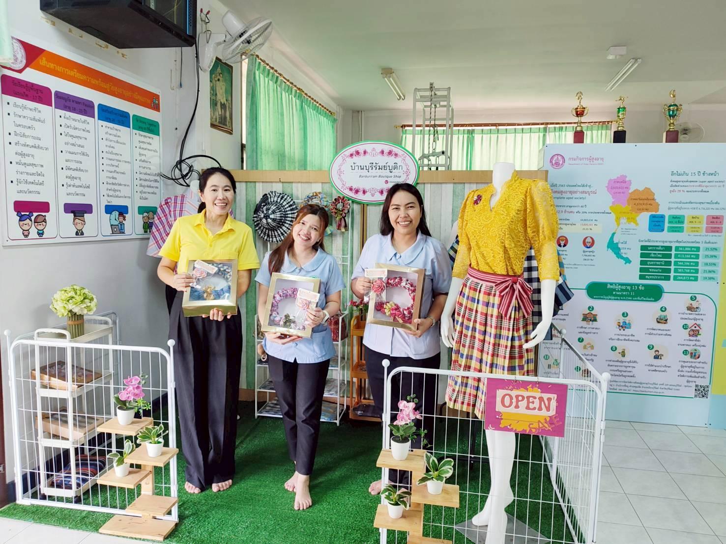 ศพส.บ้านบุรีรัมย์ ขับเคลื่อนโครงการประดิดประดอยส่งเสริมอาชีพการมีงานทำ และรายได้ผู้สูงอายุ จำหน่ายผลิตภัณฑ์ผู้สูงอายุ เข็มกลัดผ้าขาวม้า และพวงมาลัยผ้าขาวม้าสุขใจเกษียณเกษม ให้แก่ผู้มาติดต่อราชการและผู้สนใจ