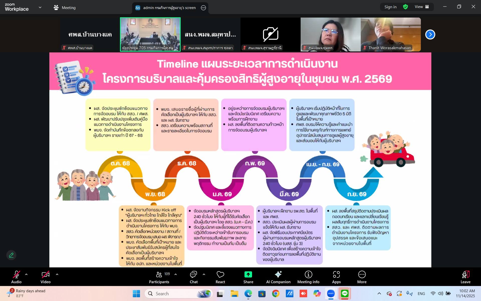 ศพส.บ้านบุรีรัมย์ ร่วมประชุมชี้แจงแนวทางการดำเนินงานโครงการบริบาลและคุ้มครองสิทธิ ผู้สูงอายุในชุมชน ประจำปี 2569 ผ่านระบบออนไลน์ Zoom Meeting โดยมีนางวาสนา ทองจันทร์ รองอธิบดีกรมกิจการผู้สูงอายุ เป็นประธานการประชุม