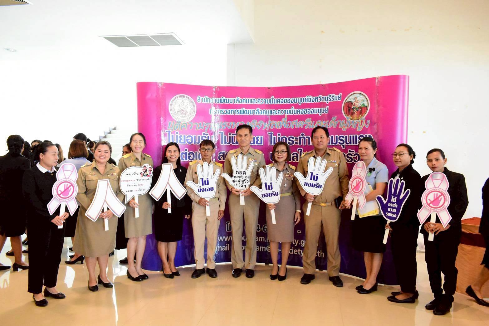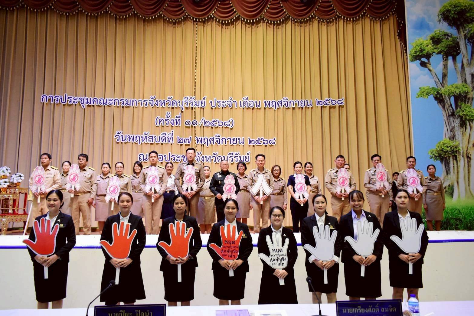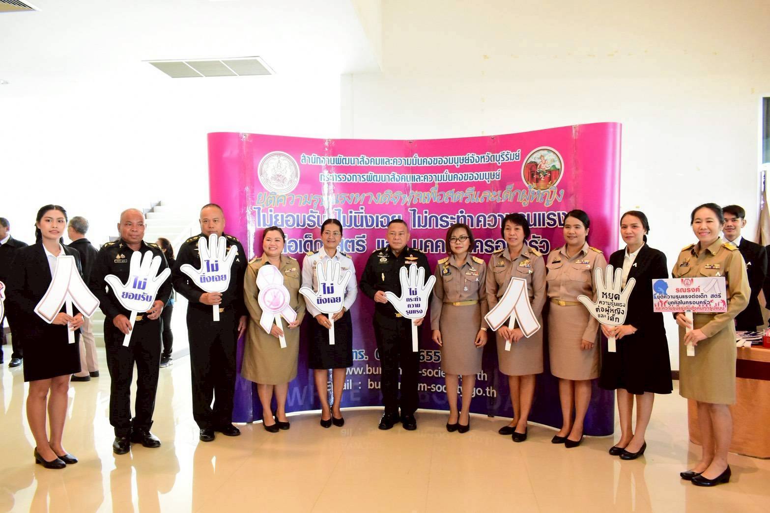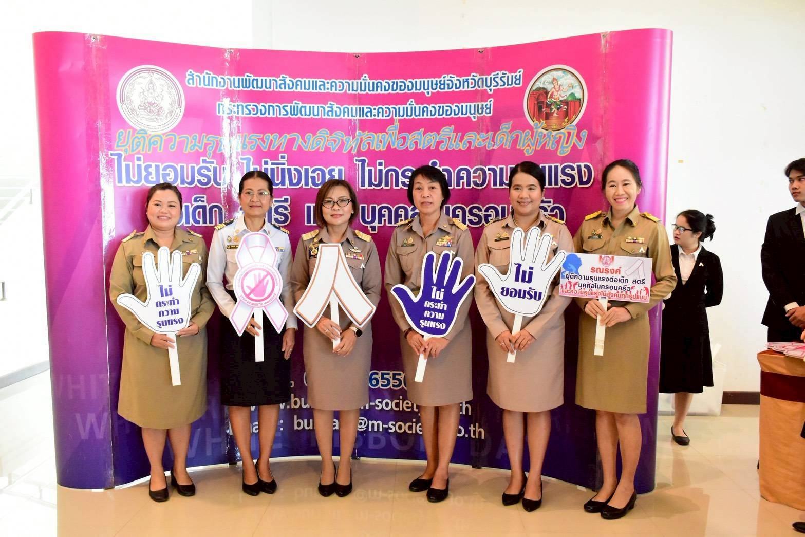 ศพส.บ้านบุรีรัมย์ ร่วมพิธีติดริบบิ้นสีขาวให้กับผู้บริหารจังหวัดบุรีรัมย์ ในกิจกรรมรณรงค์ยุติความรุนแรงต่อเด็ก สตรี และบุคคลในครอบครัว ประจำปี พ.ศ. 2568 องค์การสหประชาชาติได้ให้ความสำคัญและกำหนดให้วันที่ 25 พฤศจิกายน ของทุกปี เป็นวันรณรงค์ยุติความรุนแรงต่อเด็ก และสตรี ซึ่งสอดคล้องกับเป้าหมายการพัฒนาที่ยั่งยืน ทั้งนี้ กรมกิจการสตรีและสถาบันครอบครัว กระทรวงการพัฒนาสังคมและความมั่นคงของมนุษย์ ได้แจ้ง แนวทางการจัดกิจกรรมรณรงค์ยุติความรุนแรงต่อเด็ก สตรี และบุคคลในครอบครัว ภายใต้แนวคิด “ยุติความรุนแรงทางดิจิทัล เพื่อสตรีและเด็กผู้หญิง” ณ หอประชุมจังหวัดบุรีรัมย์ ตำบลเสม็ด อำเภอเมืองบุรีรัมย์ จังหวัดบุรีรัมย์