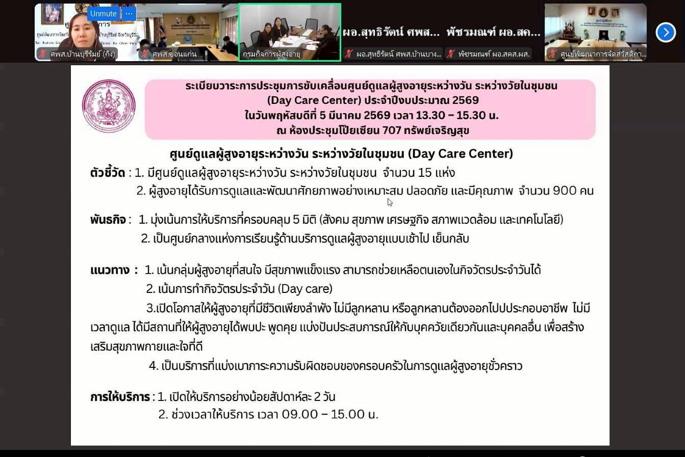 ประชุมขับเคลื่อนศูนย์ดูแลผู้สูงอายุระหว่างวัน ระหว่างวัยในชุมชน (DAY CARE CENTER) ประจำปีงบประมาณ 2569