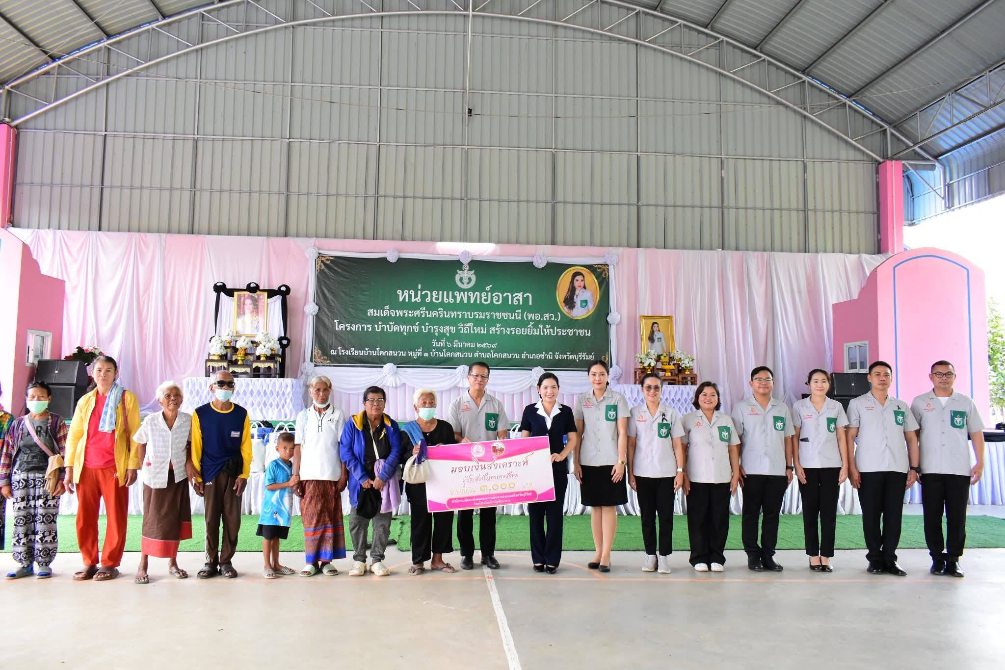 ศพส.บ้านบุรีรัมย์ ร่วมออกหน่วยแพทย์อาสาสมเด็จพระศรีนครินทราบรมราชชนนี (พอ.สว.) และโครงการ “บำบัดทุกข์ บำรุงสุข วิถีใหม่ สร้างรอยยิ้มให้ประชาชน” โดยมอบเงินสงเคราะห์ผู้ประสบปัญหาทางสังคม จำนวน 10 ราย ณ โรงเรียนบ้านโคกสนวน หมูที่ 1 ตำบลโคกสนวน อำเภอชำนิ จังหวัดบุรีรัมย์ โดยมีนายศรีธรรม ราชแก้ว รองผู้ว่าราชการจังหวัดบุรีรัมย์ เป็นประธาน
